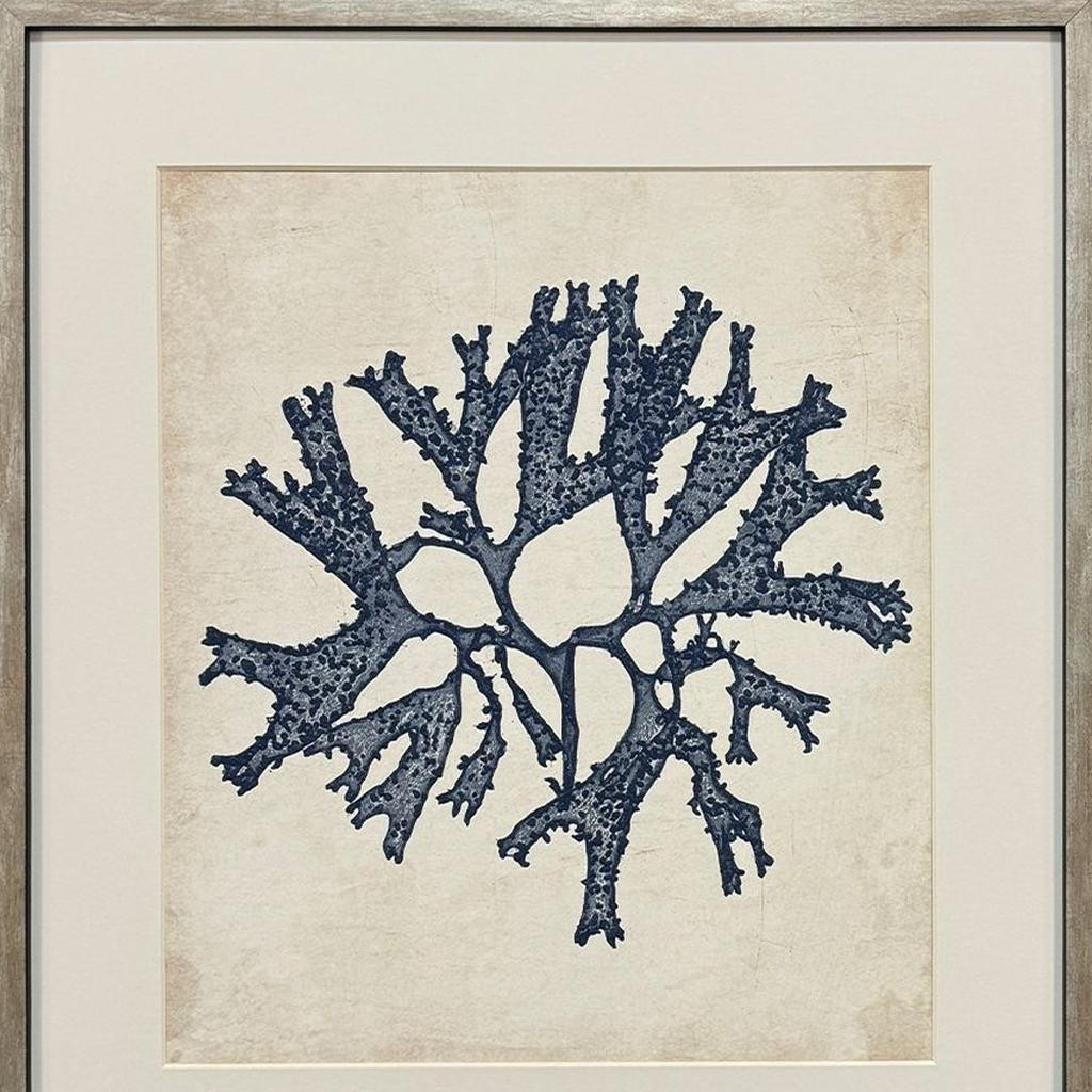 This set of four indigo sea life silver framed wall art will add a beautiful decorative accent to your decor. This block print is a way to express your artistic style and add some fashion to your walls. Reproduced for you on paper, this hanging decorative accent will be a trendy and fashionable way to dress your walls. Hang on your wall to add some up to date fashion and decoration. Utilize this opportunity to create a focal point in the room with this fabulous wall decor option. 19.00-inch h x 17.00-inch w x 2.00-inch d.