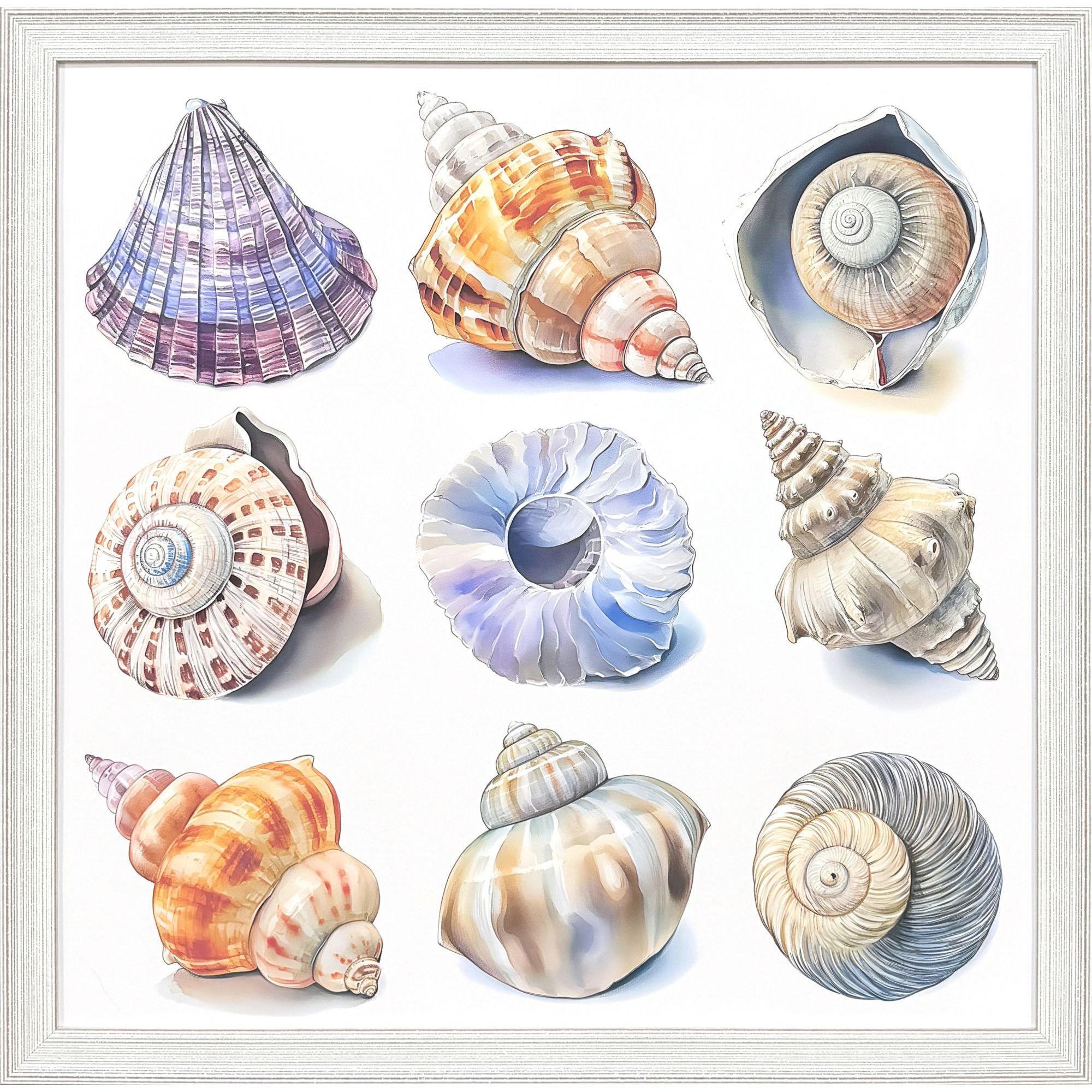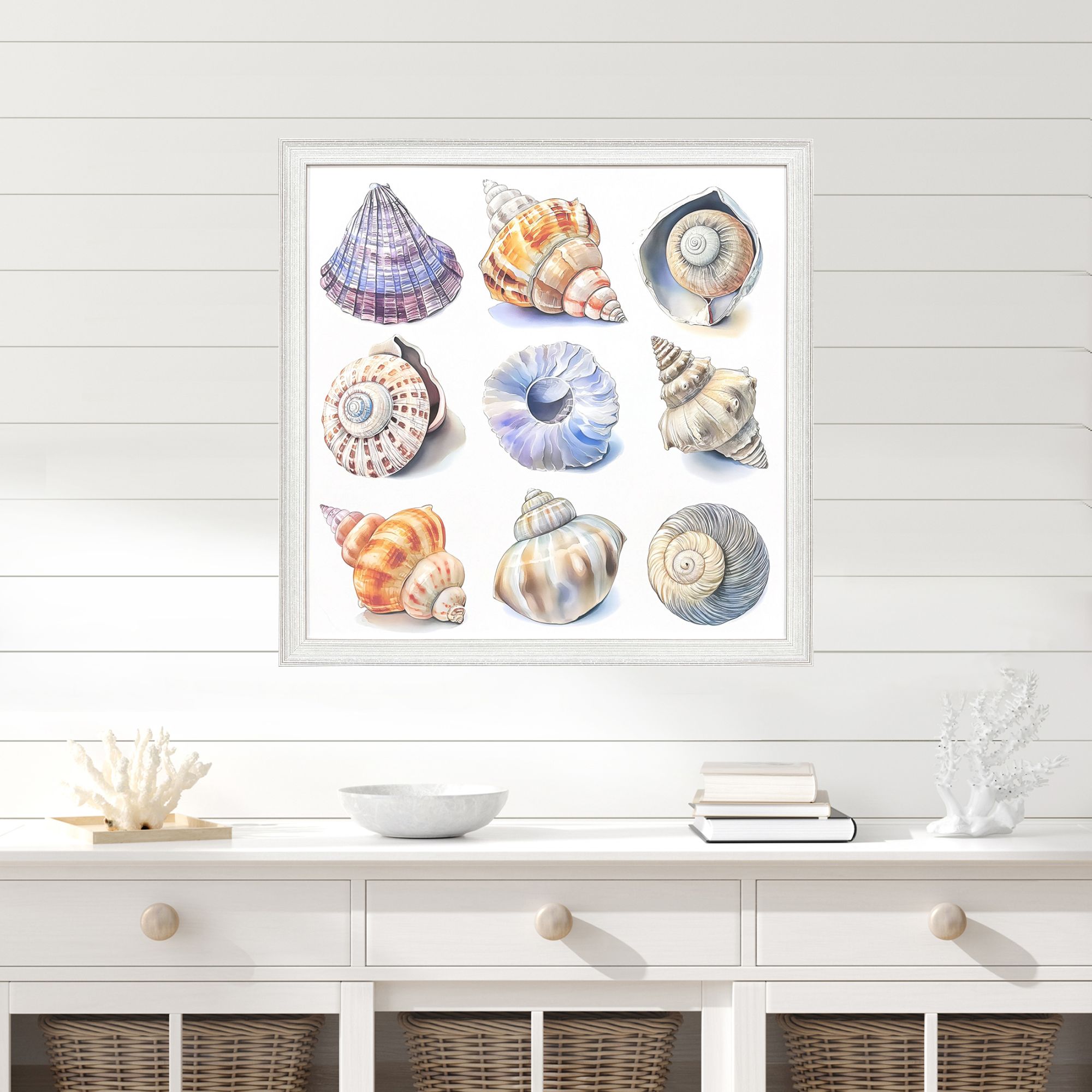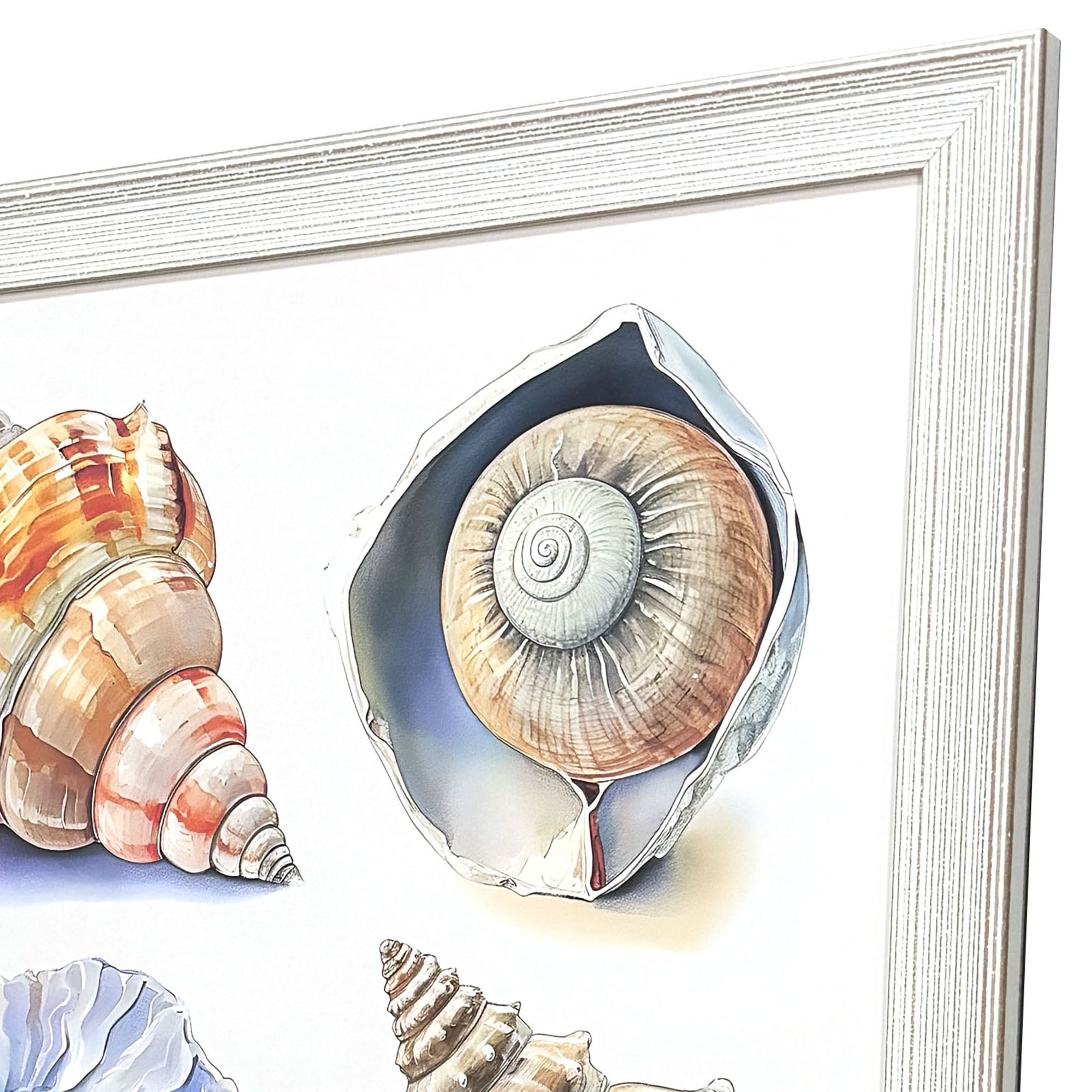 Unique and decorative, this shell factory ii distressed white framed wall art will leave a lasting impression. This block print is a way to express your artistic style and add some fashion to your walls. Reproduced for you on paper, this hanging decorative accent will be a trendy and fashionable way to dress your walls. Adding this hanging wall art to your space to make your room feel more finished and attractive. Utilize this opportunity to create a focal point in the room with this fabulous wall decor option. 33.00-inch h x 33.00-inch w x 1.00-inch d.
