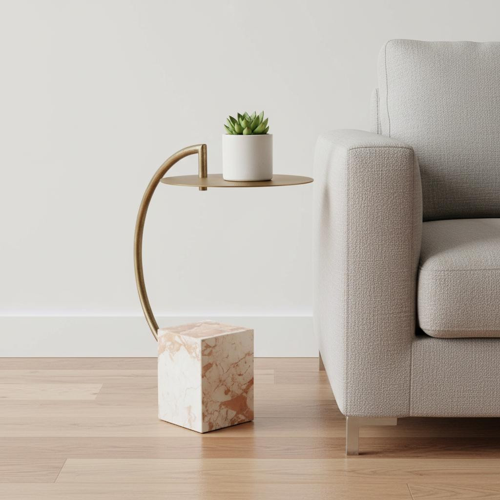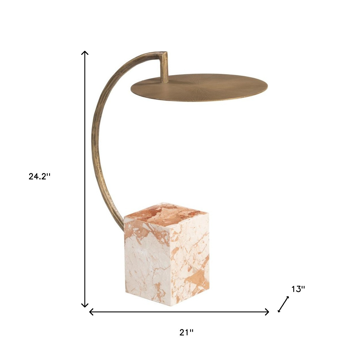 Distinctive in style the 24-inch brass iron pedestal end table radiates a versatile charm. Made of iron, the brass coloration throughout gives this piece an updated and refreshing look. An ideal location for placing your snacks and drinks, and a place to keep your lamp, frames, or other accessories. You can also use it as an entryway table to hold your keys. 24.2-inch h x 21-inch w x 13-inch d.