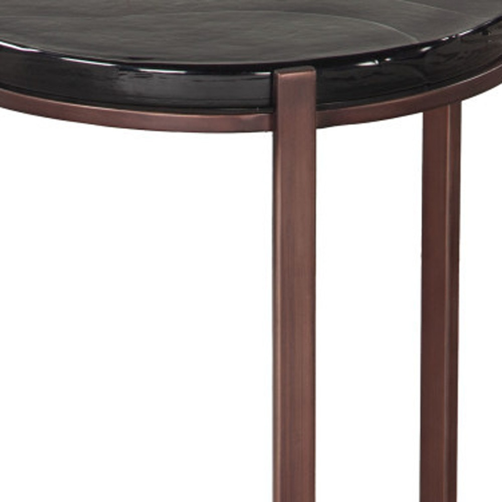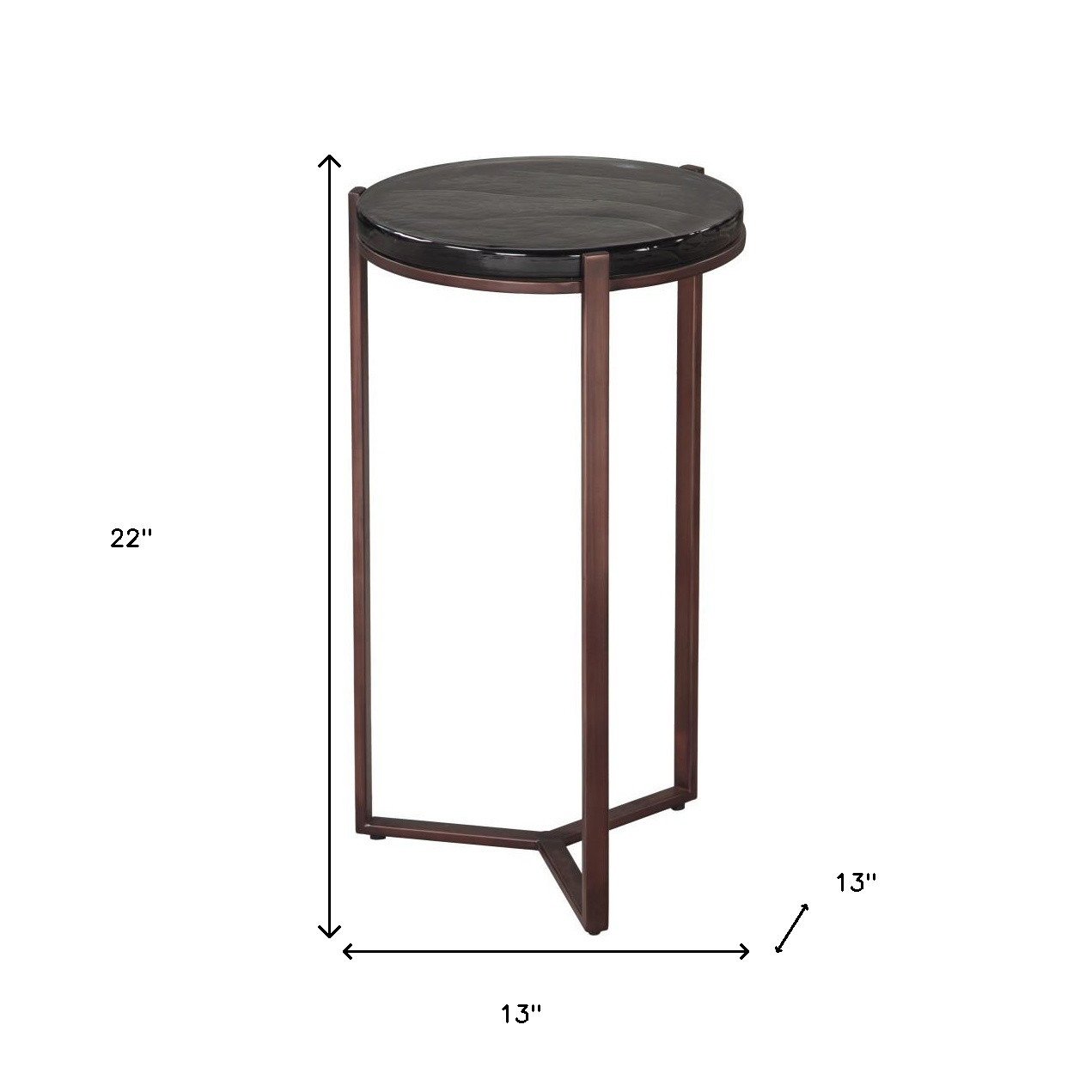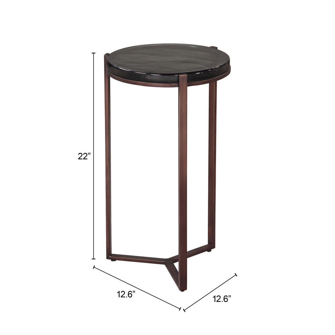 Show off your exquisite taste with this 22-inch bronze iron pedestal end table. This table features quality construction from iron and an updated monotone color scheme with bronze as the main color on both the top and the base. An ideal location for placing your snacks and drinks, and a place to keep your lamp, frames, or other accessories. You can match it with other pieces to get the ideal look for your place. 22-inch h x 13-inch w x 13-inch d.