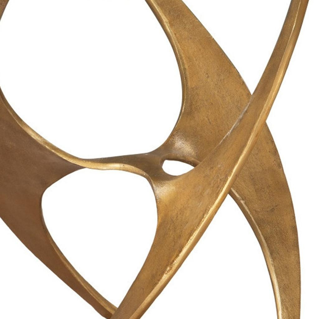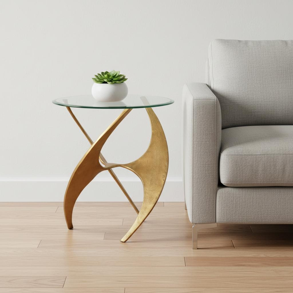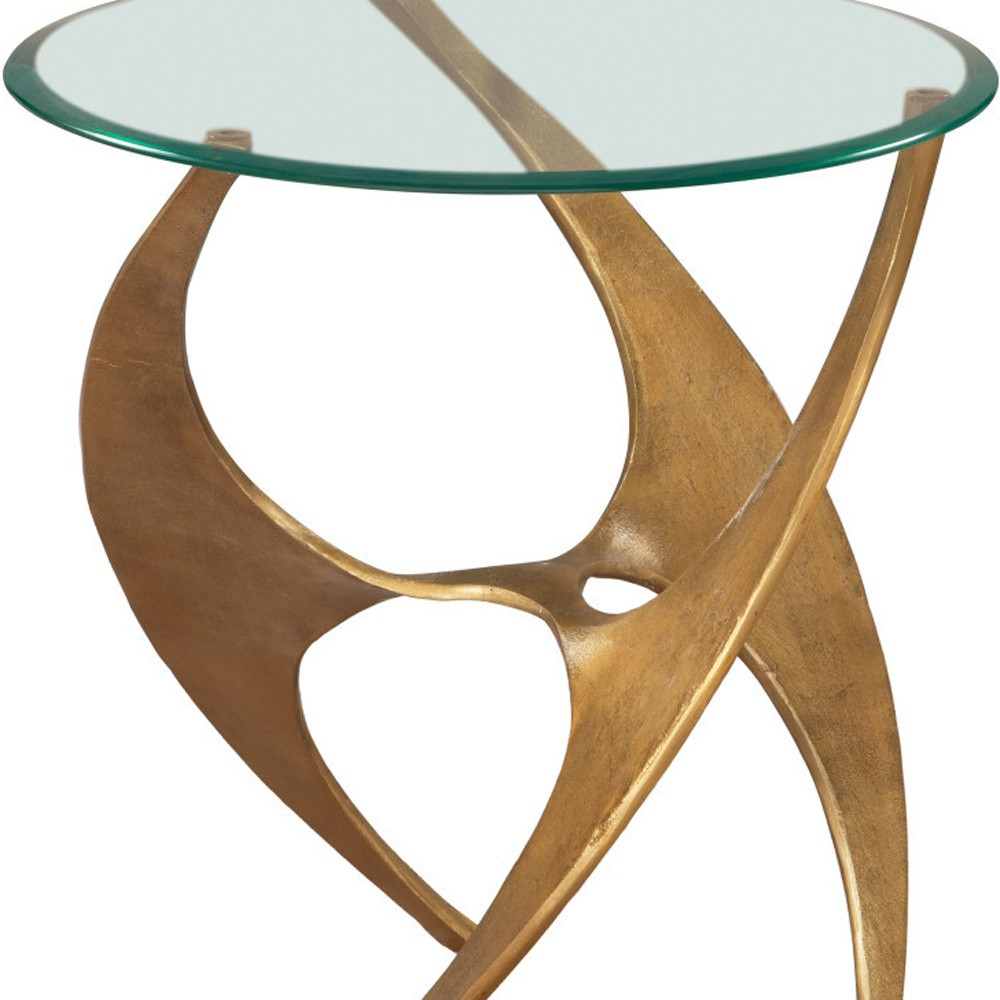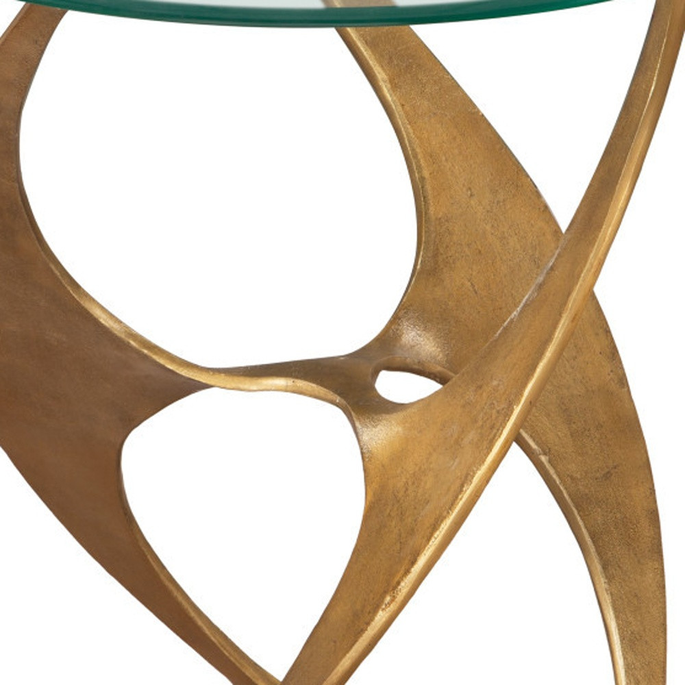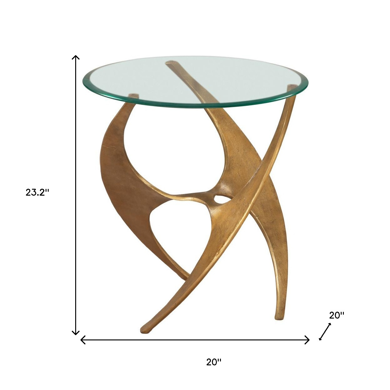Distinctive in style the 23-inch gold aluminum pedestal end table radiates a versatile charm. Made of aluminum, the gold coloration throughout gives this piece an updated and refreshing look. A great accent on either side of the sofa or bed, this adorable end or side table is just what you need. You can also use it as an entryway table to hold your keys. 23.2-inch h x 20-inch w x 20-inch d.