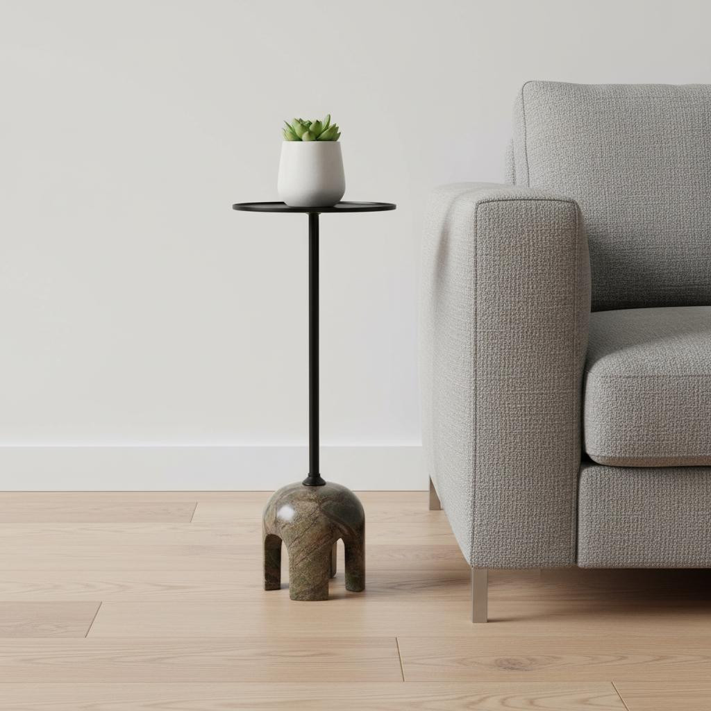 Optimize your space and add some charm to your room with the 22-inch brown marble pedestal end table. This table is made from marble in a brown color throughout the base and top. Side tables are a great way to flank your sofa, use as an accent next to your favorite chair, or can even be used bedside. You can also use it as an entryway table to hold your keys. 22-inch h x 10-inch w x 10-inch d.