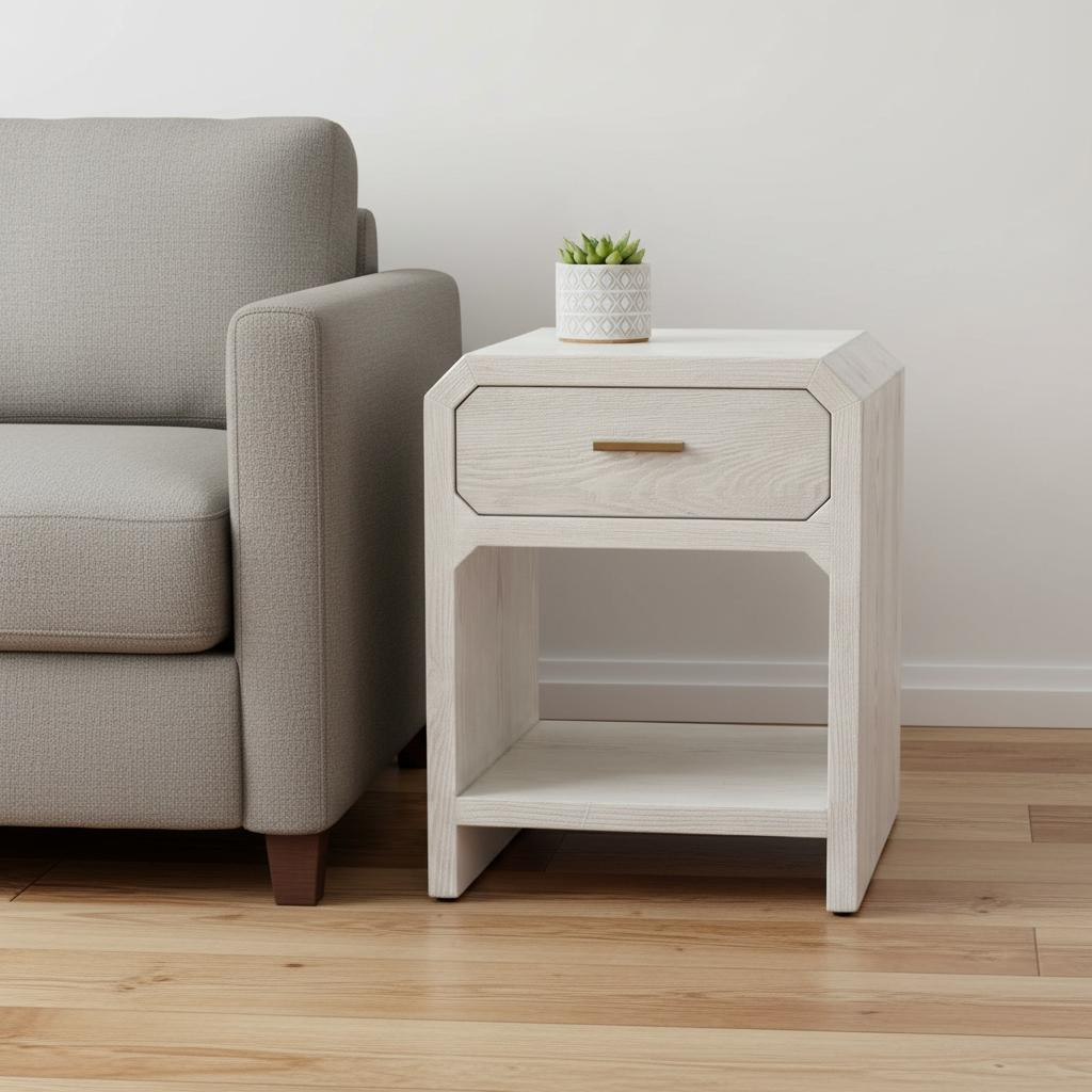 wood pedestal end table drawer, pedestal end table drawer, white wood pedestal end table, wood pedestal end table, end table drawer |