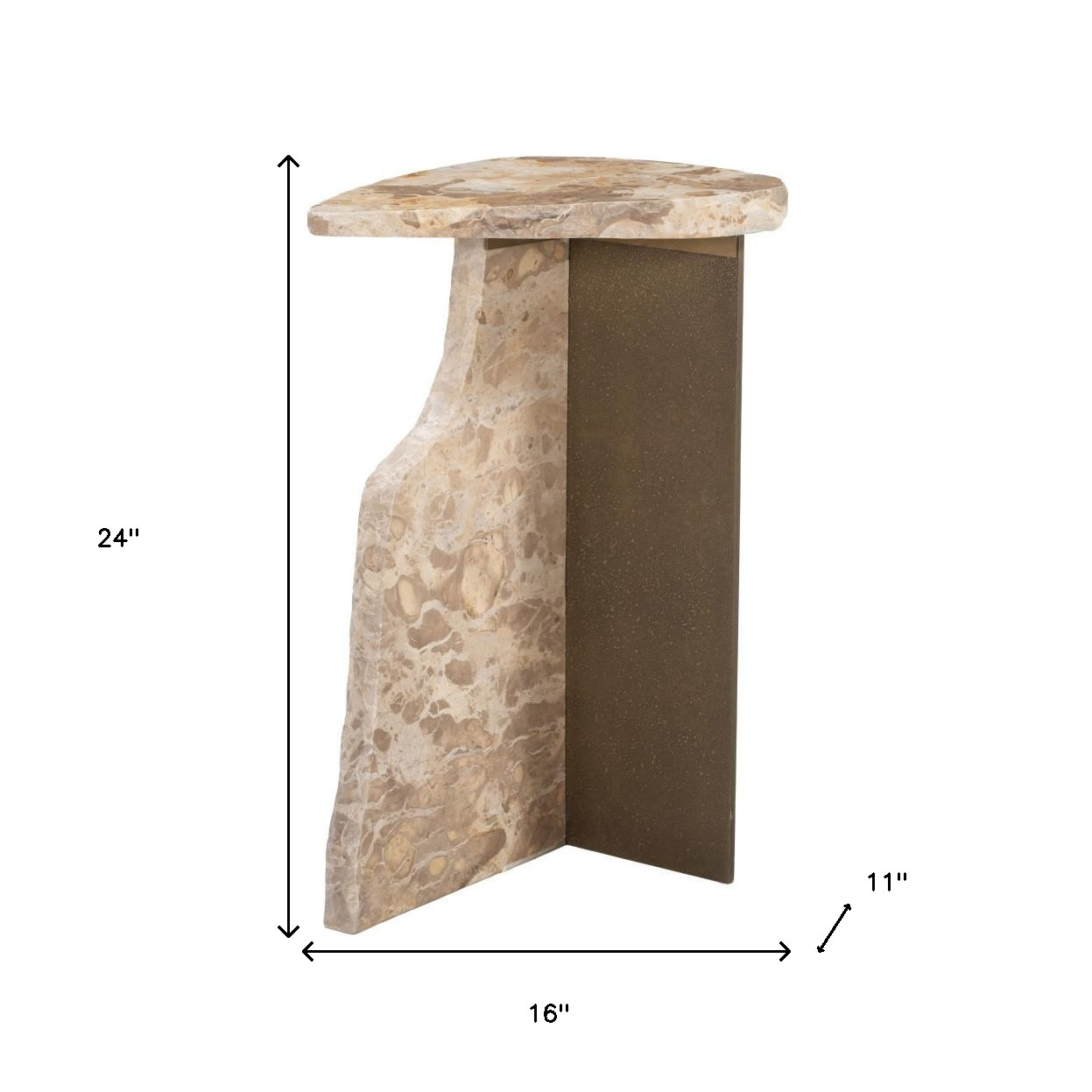 Optimize your space and add some charm to your room with the 24-inch beige marble pedestal end table. This table is made from marble in a beige color throughout the base and top. A great accent on either side of the sofa or bed, this adorable end or side table is just what you need. This versatile table is a great accent for most any room. 24-inch h x 16-inch w x 11-inch d.