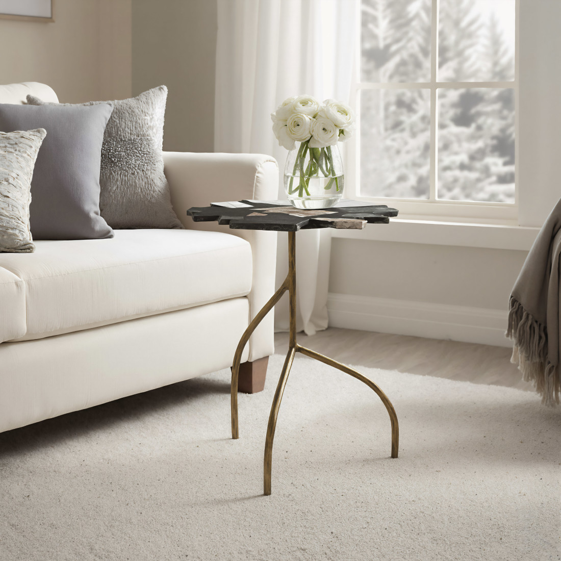 Optimize your space and add some charm to your room with the 23-inch black and brown iron pedestal end table. The top of this iron table is black, while the base is a nice compliment in brown. Side tables are a great way to flank your sofa, use as an accent next to your favorite chair, or can even be used bedside. You can match it with other pieces to get the ideal look for your place. 23-inch h x 18-inch w x 18-inch d.