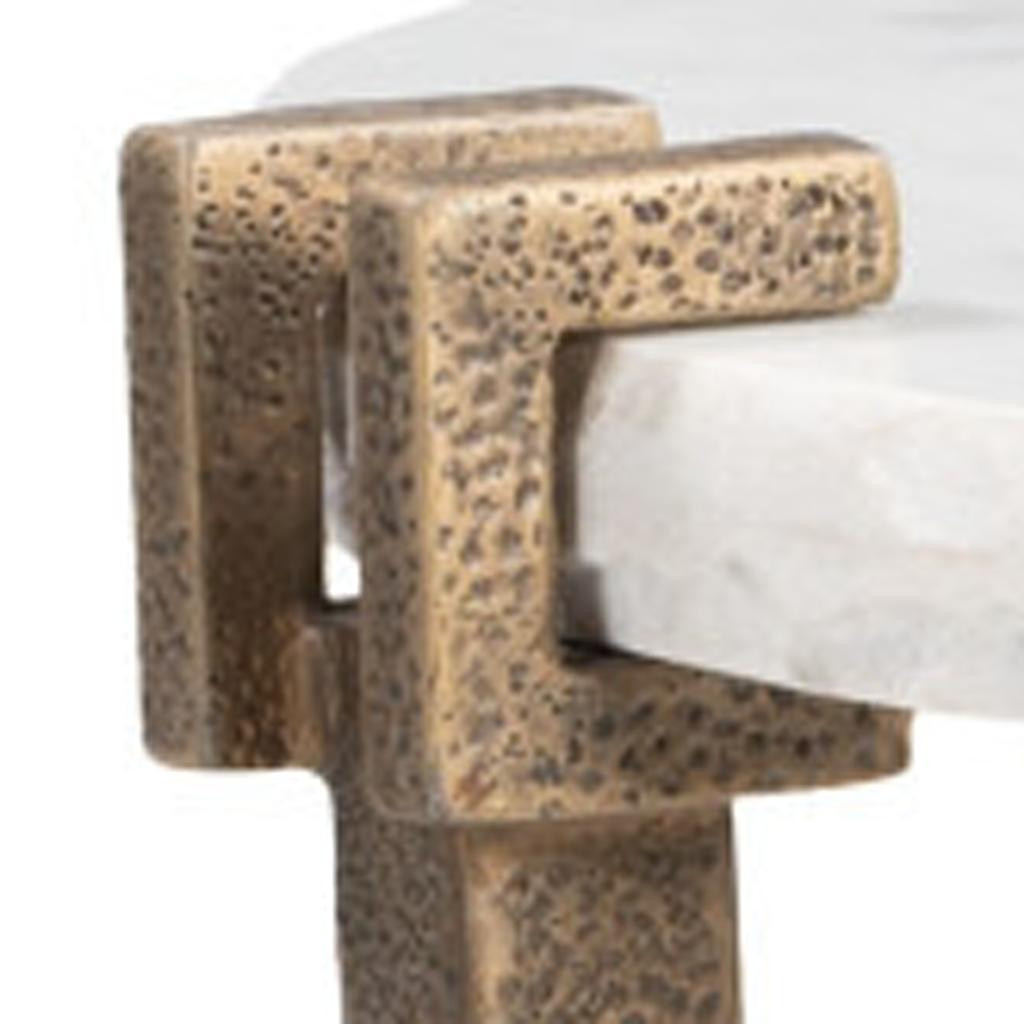Show off your exquisite taste with this 22-inch white iron pedestal end table. Made of iron, the white coloration throughout gives this piece an updated and refreshing look. An ideal location for placing your snacks and drinks, and a place to keep your lamp, frames, or other accessories. You can also use it as an entryway table to hold your keys. 21.5-inch h x 19-inch w x 19-inch d.