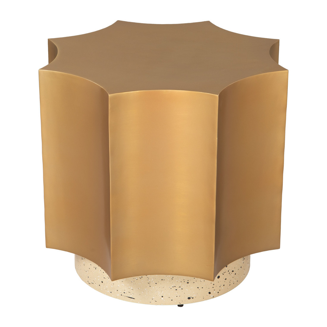 Distinctive in style the 20-inch beige iron pedestal end table radiates a versatile charm. This table features quality construction from iron and an updated monotone color scheme with beige as the main color on both the top and the base. A great accent on either side of the sofa or bed, this adorable end or side table is just what you need. You can match it with other pieces to get the ideal look for your place. 20.1-inch h x 22-inch w x 22-inch d.