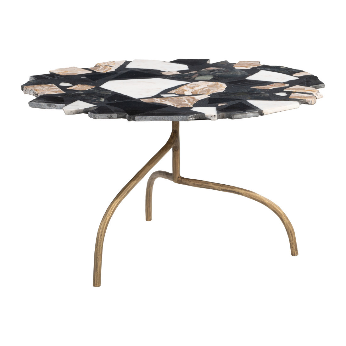 pedestal coffee table, free form pedestal coffee table, form pedestal coffee table, iron free form pedestal coffee, 33" black gold terrazzo iron |
