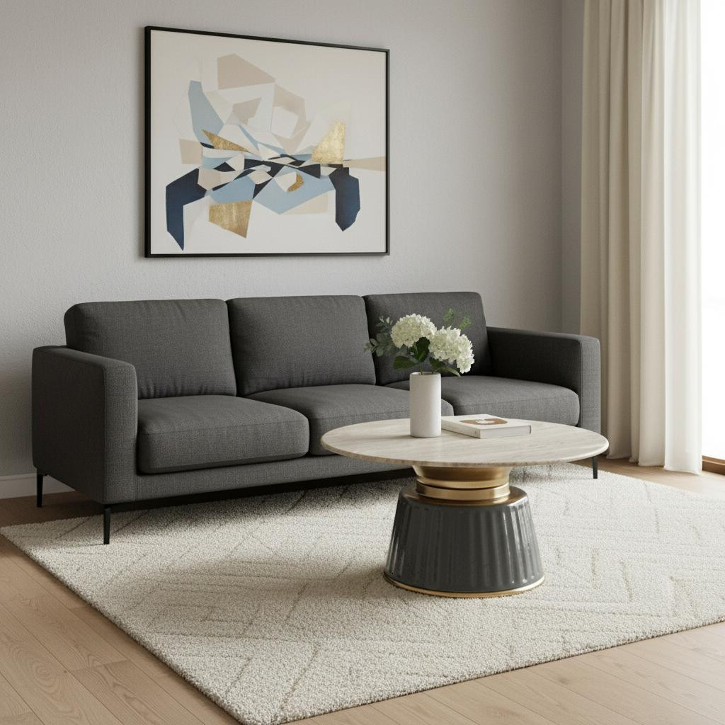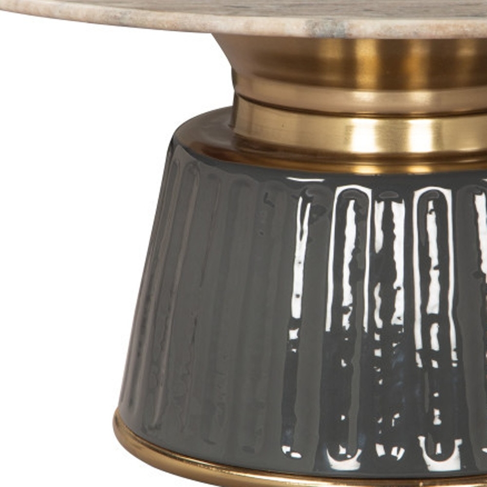 Make a statement with the 33-inch beige and black genuine marble and wood round pedestal coffee table and infuse a dash of character and personality into your space. The black coloration of the high quality manufactured wood base marries nicely with the beige genuine marble top surface. It has an attractive design that will definitely breathe some fresh air into your interior. 16.7-inch h x 33-inch w x 33-inch d.