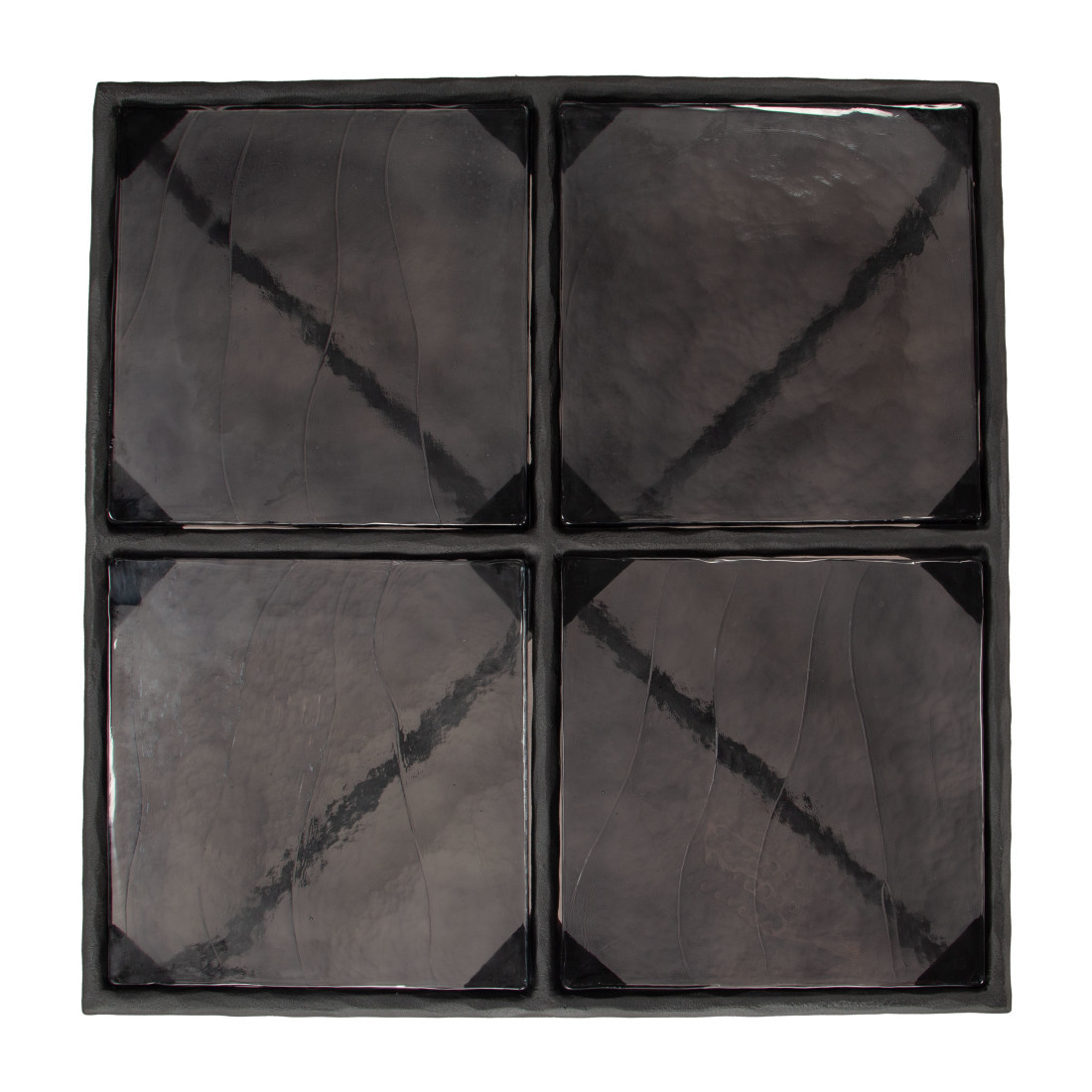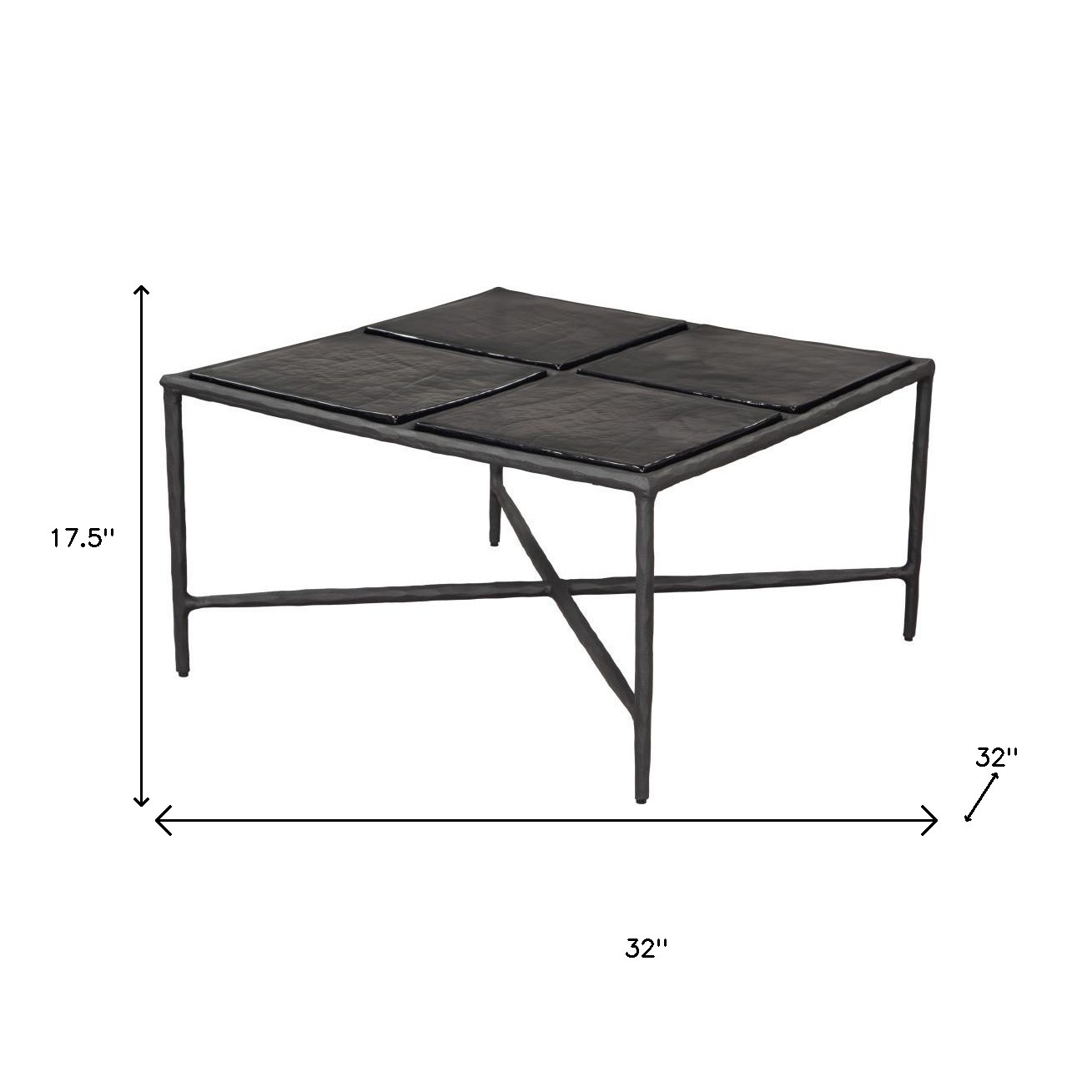 This stylish 32-inch black glass and aluminum square pedestal coffee table is sure to inspire compliments no matter where it sits. A sleek black monotone color gives this aluminum and glass table a fresh and updated look. This square table utilizes its unique shape to give your room a modern geometric accent. If you're looking for something that can fit into a living area, bedroom, or office, this coffee table is for you. 17.5-inch h x 32-inch w x 32-inch d.