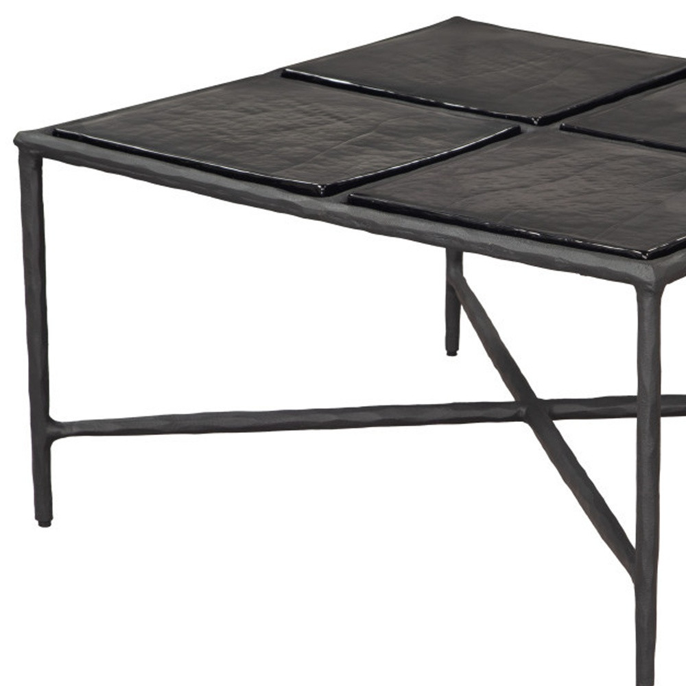 aluminum square pedestal coffee table, square pedestal coffee table, glass aluminum square pedestal coffee, black glass aluminum square pedestal, 32" black glass |