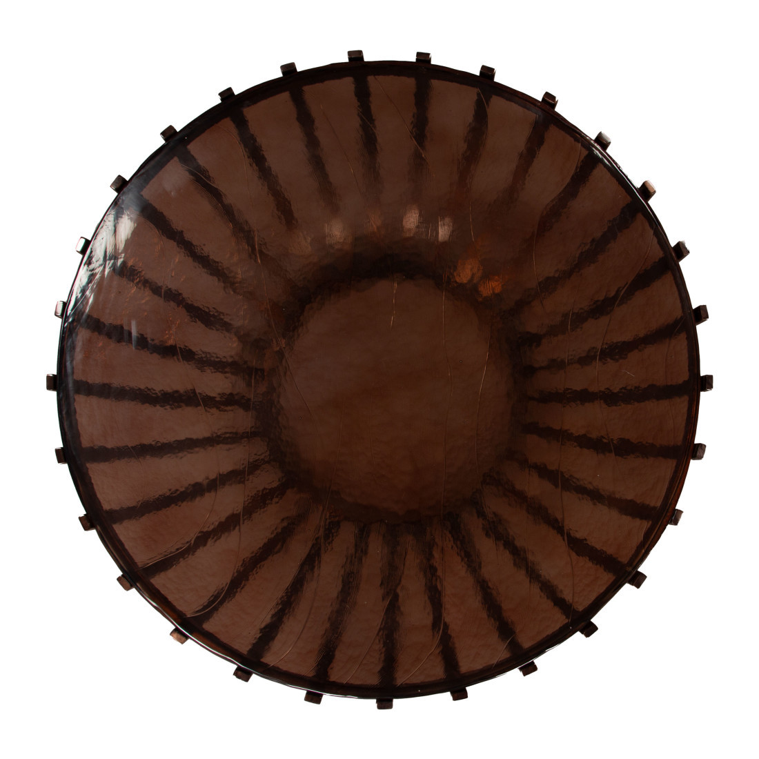 Make your living room or family room really stand out with this 34-inch bronze glass and iron round pedestal coffee table. A sleek bronze monotone color gives this iron and glass table a fresh and updated look. If you're looking for something that can fit into a living area, bedroom, or office, this coffee table is for you. 16.5-inch h x 34-inch w x 34-inch d.