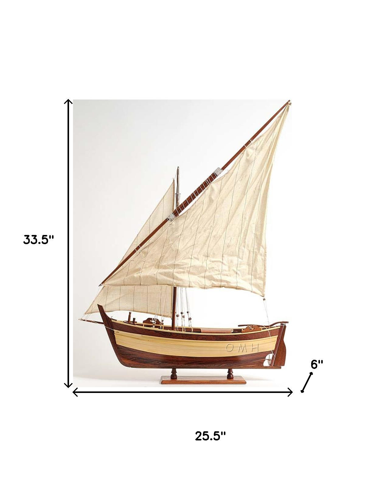 Bring some sizzle to your space with this eye-catching 34-inch unfinished wood hand painted model boat. This replica makes a great tabletop accent for your coffee table, desk, bookshelf, dresser or mantle. A perfect decorative addition for anyone who loves nostalgia and vintage style models and replicas. It's a perfect addition for those who love an up-to-the-minute look and feel. 33.50-inch h x 25.50-inch w x 6.00-inch d.