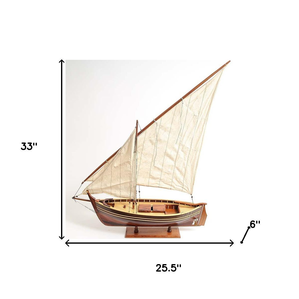The 33-inch unfinished wood hand painted model boat is the perfect decorative accessory for your home. This replica makes a great tabletop accent for your coffee table, desk, bookshelf, dresser or mantle. A perfect decorative addition for anyone who loves nostalgia and vintage style models and replicas. Great to use on its own or mix with other decorations for the perfect look. 33.00-inch h x 25.50-inch w x 6.00-inch d.