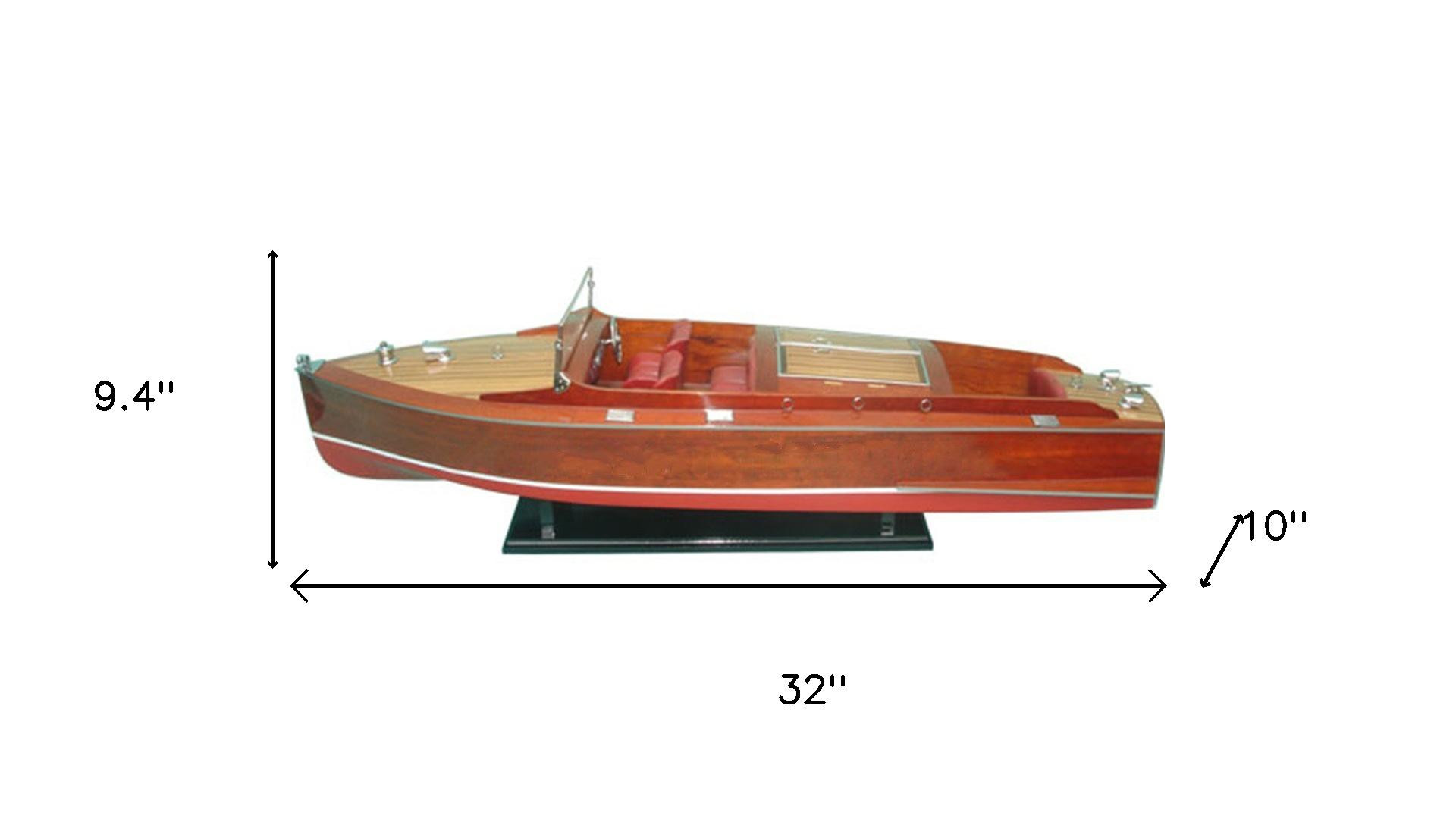 Bring some sizzle to your space with this eye-catching 9-inch unfinished wood hand painted model boat. This replica makes a great tabletop accent for your coffee table, desk, bookshelf, dresser or mantle. A perfect decorative addition for anyone who loves nostalgia and vintage style models and replicas. Great to use on its own or mix with other decorations for the perfect look. 9.40-inch h x 32.00-inch w x 10.00-inch d.