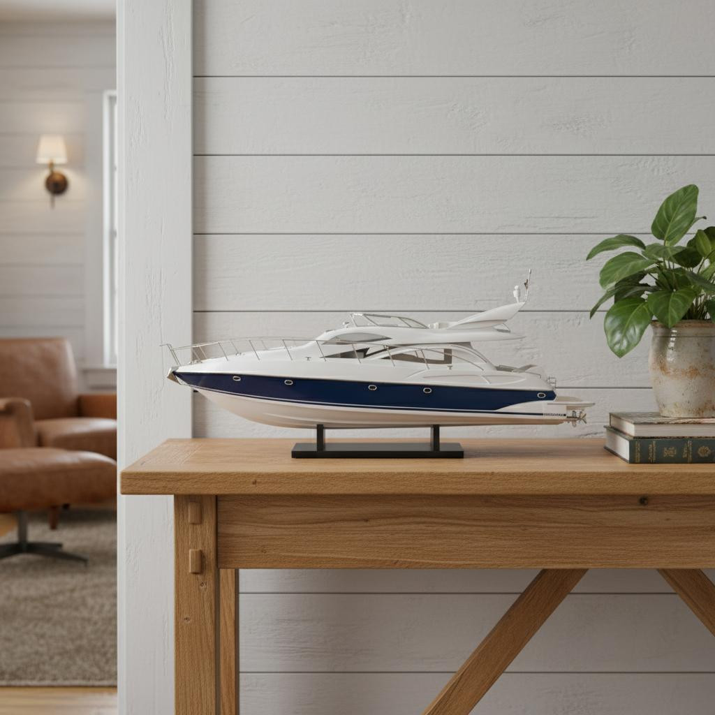 This 15-inch unfinished wood hand painted model boat will add a beautiful decorative accent to your decor. This replica makes a great tabletop accent for your coffee table, desk, bookshelf, dresser or mantle. A perfect decorative addition for anyone who loves nostalgia and vintage style models and replicas. It's a perfect addition for those who love an up-to-the-minute look and feel. 15.35-inch h x 35.43-inch w x 10.63-inch d.
