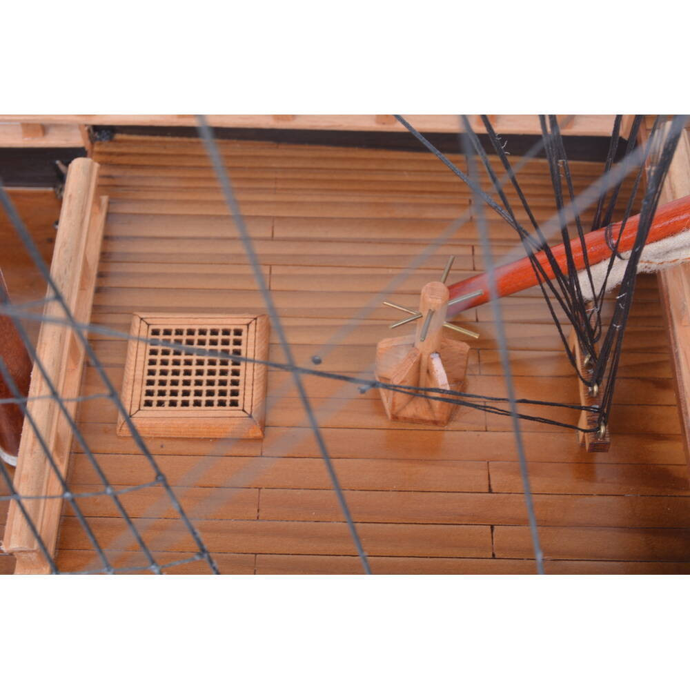 The 32-inch unfinished wood hand painted model boat is a stunning addition to any decor. This handmade sculpture showcases exquisite craftsmanship with its intricate details and natural wood finish. As a replica of the le furieux model ship from the admiral line, it captures the essence of maritime history beautifully. The hand-painted accents enhance its visual appeal, making it a striking centerpiece for both collectors and enthusiasts alike. Crafted in a charming craftsman style, this model boat adds character and sophistication to your home. Perfect for display on shelves or mantels, it offers a timeless touch that complements various interior designs. Elevate your space with this unique piece that celebrates artistry and nautical heritage. 31.90-inch h x 36.60-inch w x 11.20-inch d.
