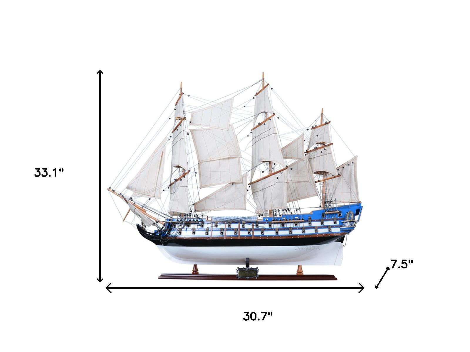 The 33-inch unfinished wood hand painted model boat is a captivating piece that combines artistry and craftsmanship. This handmade sculpture showcases exceptional attention to detail, making it a stunning addition to any decor. Crafted from high-quality wood, each model exudes a rustic charm, perfect for nautical enthusiasts. The hand-painted finish enhances its visual appeal, creating a unique statement piece for your home. As a replica of the renowned "le protecteur medium admiral line," it highlights the beauty and elegance of classic maritime design. With its craftsman style, this model boat will effortlessly complement various interior aesthetics while serving as a conversation starter for guests. 33.10-inch h x 30.70-inch w x 7.50-inch d.