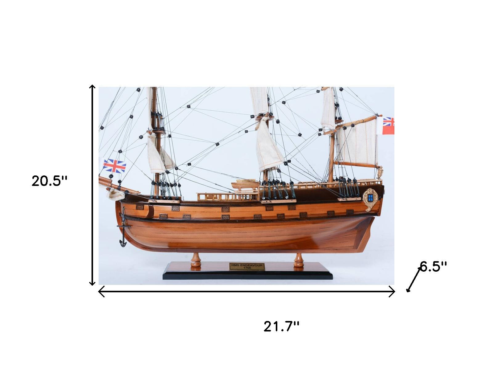The 21-inch unfinished wood hand painted model boat is a stunning piece that adds a touch of craftsmanship to any space. This handmade sculpture captures the intricate details of the hms endeavour small captain line, making it a unique addition to your decor. Crafted from high-quality wood, it showcases the expert artistry involved in its creation. The hand-painted finish enhances its visual appeal, bringing the model boat to life with vibrant colors. Its craftsman style ensures that it stands out as a statement piece, perfect for collectors or those looking to elevate their home decor. Display it on a shelf or mantle to inspire conversation and admiration among guests. 20.50-inch h x 21.70-inch w x 6.50-inch d.