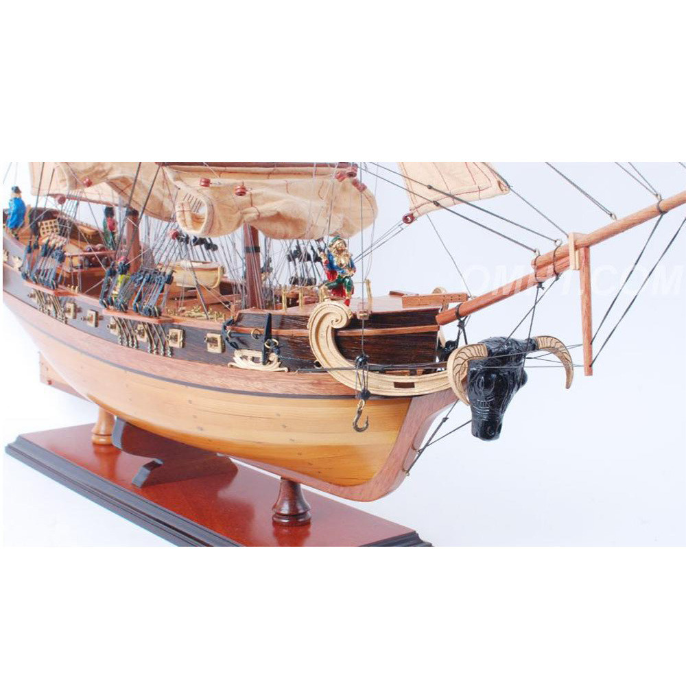 The 26-inch unfinished wood hand painted model boat captures the essence of nautical artistry with its intricate design. Handmade from premium wood, this exquisite sculpture showcases a charming replica of the pirate ship small captain line. Each detail is thoughtfully hand-painted, reflecting the craftsmanship that goes into its creation. Ideal for enhancing any room's decor, its craftsman style adds a touch of sophistication to your home. This model boat serves as a delightful conversation starter and a tribute to maritime history, making it a perfect addition for collectors and enthusiasts alike. Embrace the allure of seafaring adventures with this beautifully crafted piece that will elevate your interior aesthetic. 26.00-inch h x 28.70-inch w x 8.70-inch d.