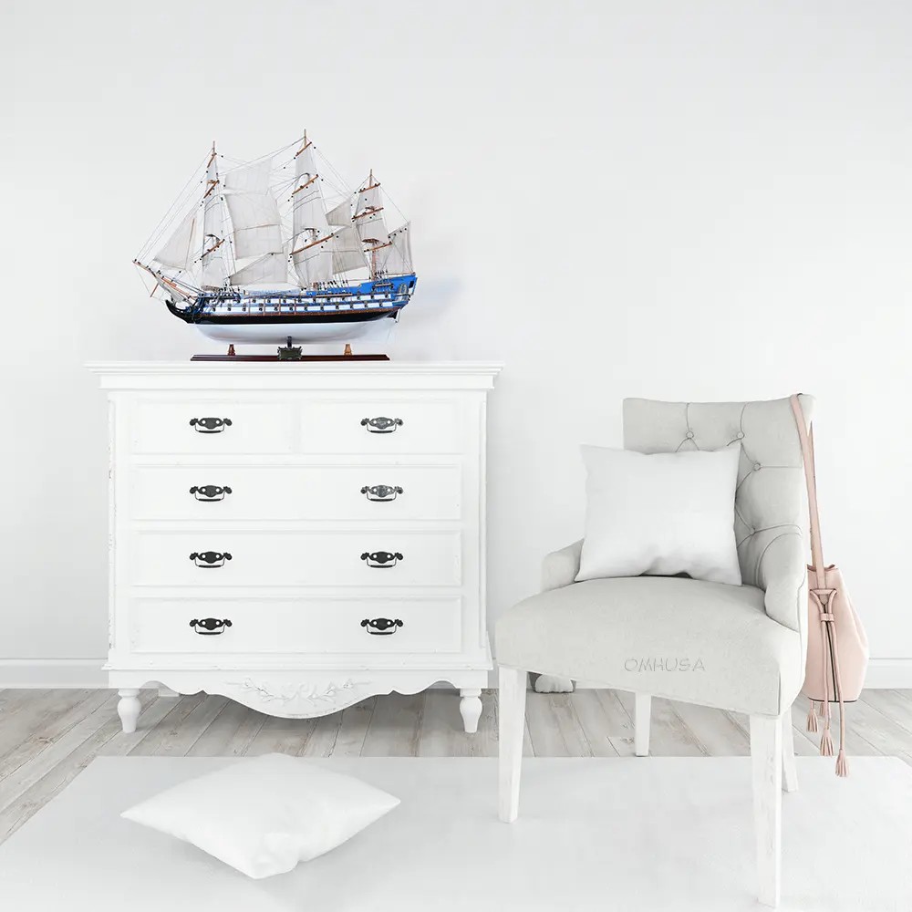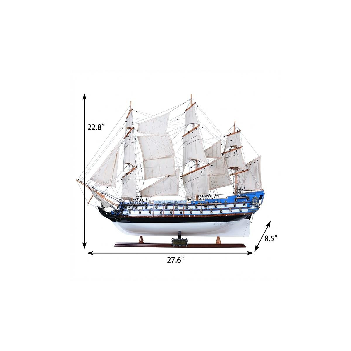 Unique and decorative, this 23-inch unfinished wood hand painted model boat will leave a lasting impression. This replica makes a great tabletop accent for your coffee table, desk, bookshelf, dresser or mantle. A perfect decorative addition for anyone who loves nostalgia and vintage style models and replicas. A perfect decorative addition for anyone who loves a stylish look and feel. 22.80-inch h x 27.60-inch w x 8.50-inch d.