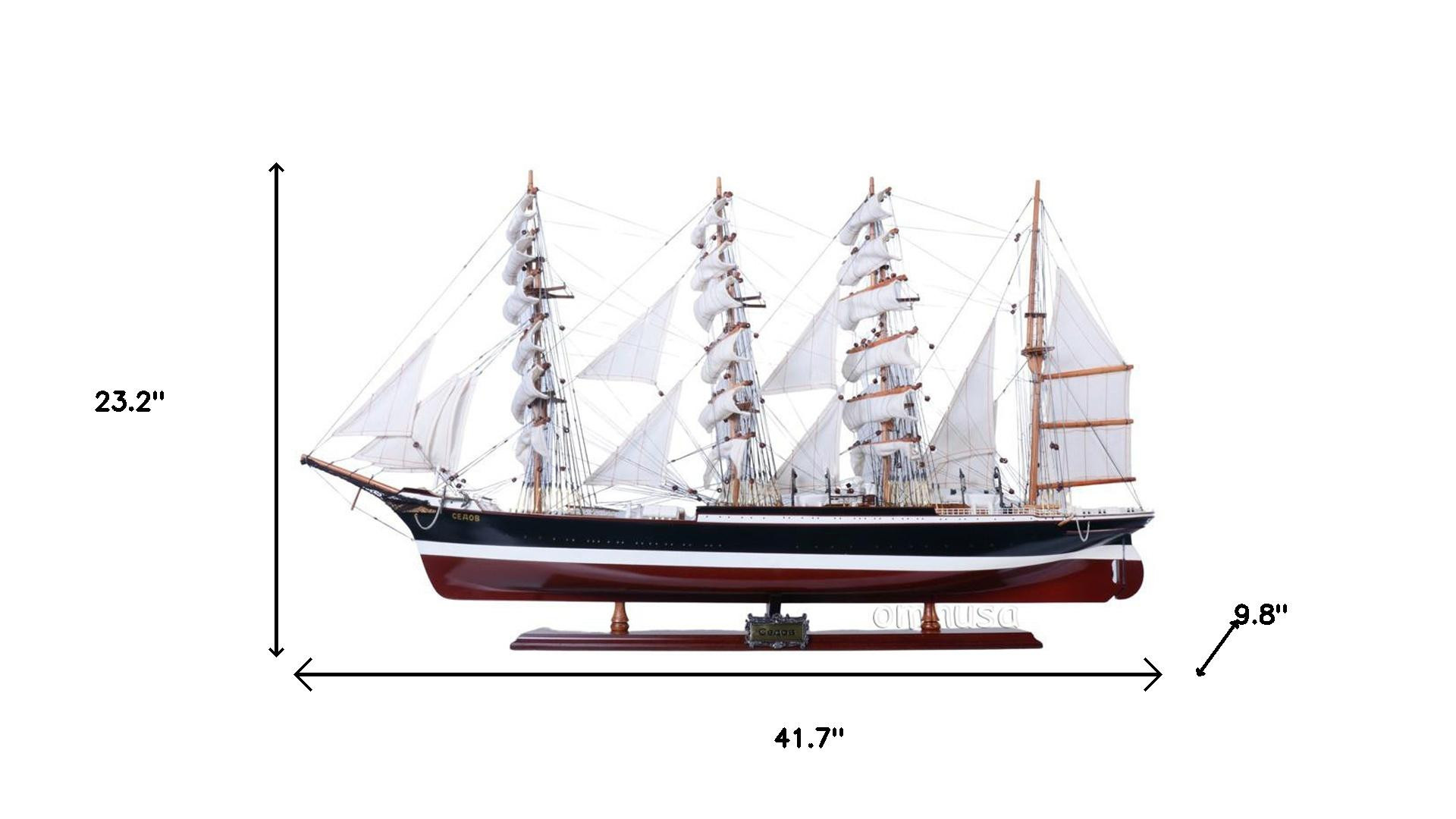 The 23-inch unfinished wood hand painted model boat is a stunning piece of craftsmanship designed to capture the essence of maritime beauty. Each model boat is expertly handmade, showcasing the artistry that goes into its creation. The sculpture features meticulous hand-painted details, elevating it from a simple decor item to a captivating focal point. Crafted from high-quality wood, this piece not only adds warmth to your space but also serves as a conversation starter. The sedov painted large replica reflects the timeless allure of nautical themes, making it perfect for any craftsman-style decor. Enhance your living area or office environment with this elegant and unique model boat that beautifully combines artistry and tradition. 23.20-inch h x 41.70-inch w x 9.80-inch d.