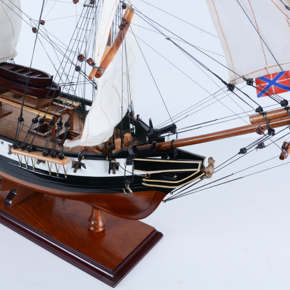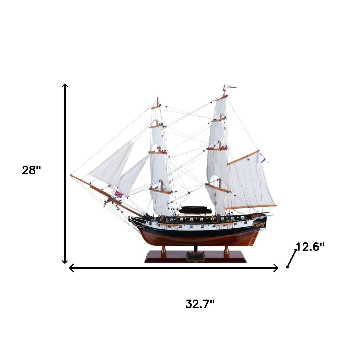 28-inch unfinished wood hand painted model boat is a beautifully crafted piece that adds a touch of elegance to any decor. This handmade sculpture showcases the meticulous craftsmanship involved in its creation, ensuring each detail is unique. Made from high-quality wood, it offers both durability and a natural aesthetic that can complement various interior styles. The hand-painted design brings vibrant colors and character to the model, making it a striking focal point. As a replica of the mercury painted medium admiral line, this piece captures the essence of classic maritime artistry and reflects the timeless allure of nautical themes. Its craftsman style adds a warm, inviting touch to your space, making it perfect for any home or office setting. 28.00-inch h x 32.70-inch w x 12.60-inch d.