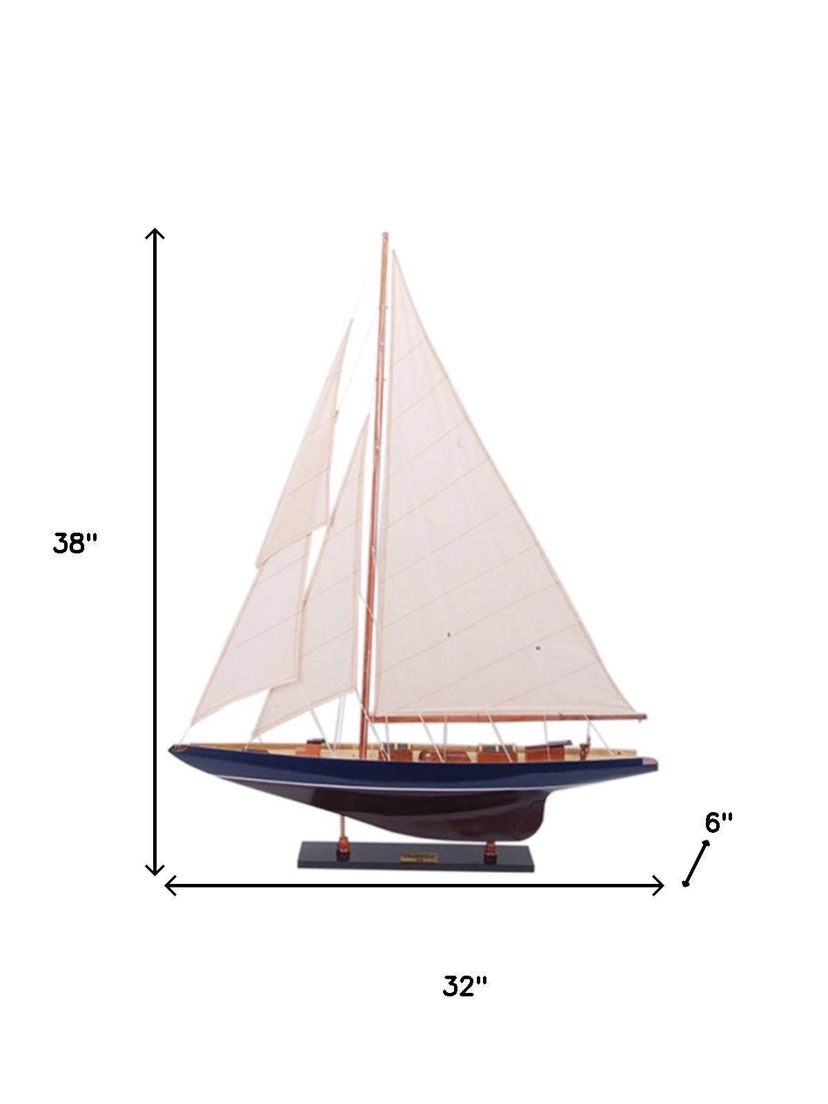 Shamrock Dark Blue & Brown Painted Medium Sailboat Schooner Yacht Model 32 Inches Long |