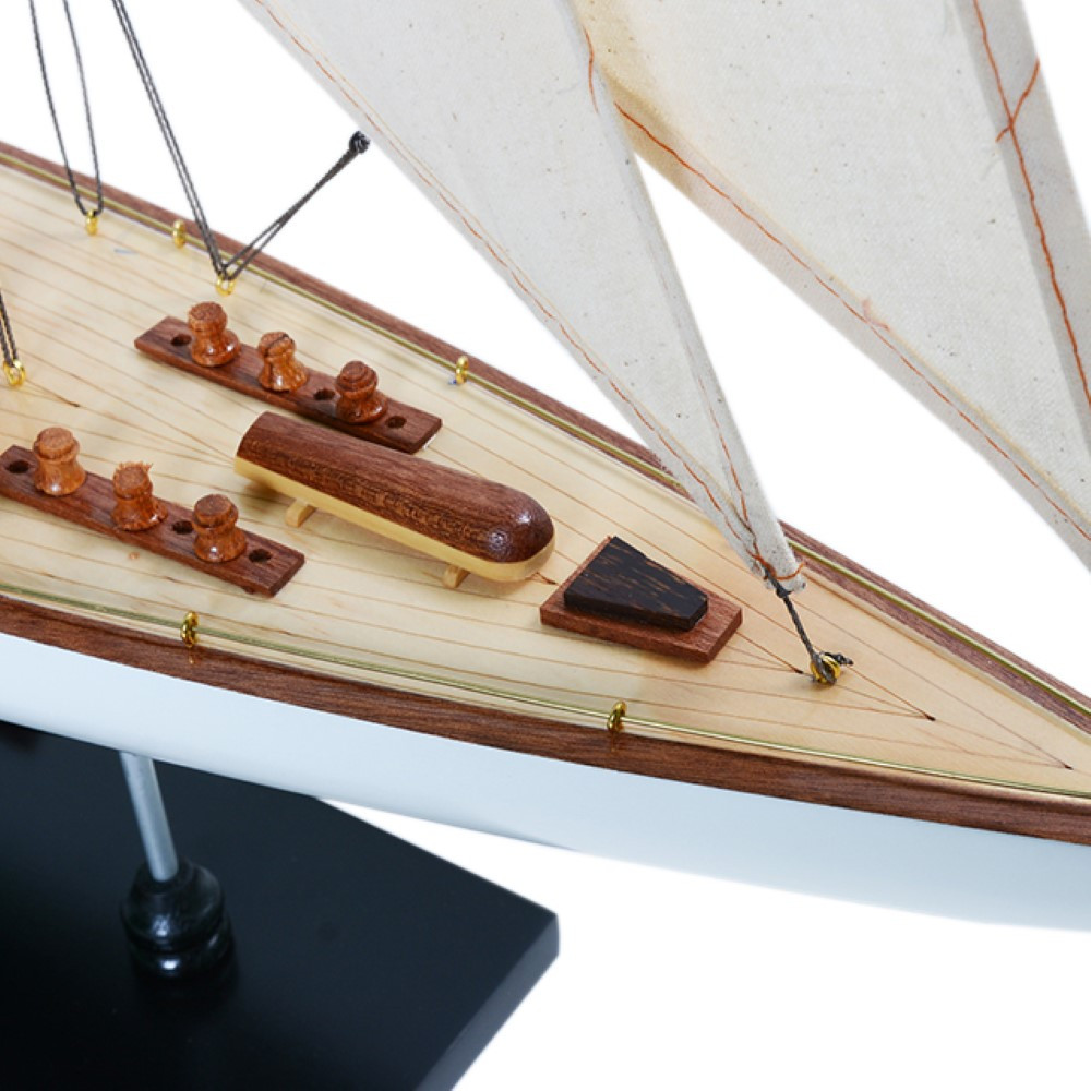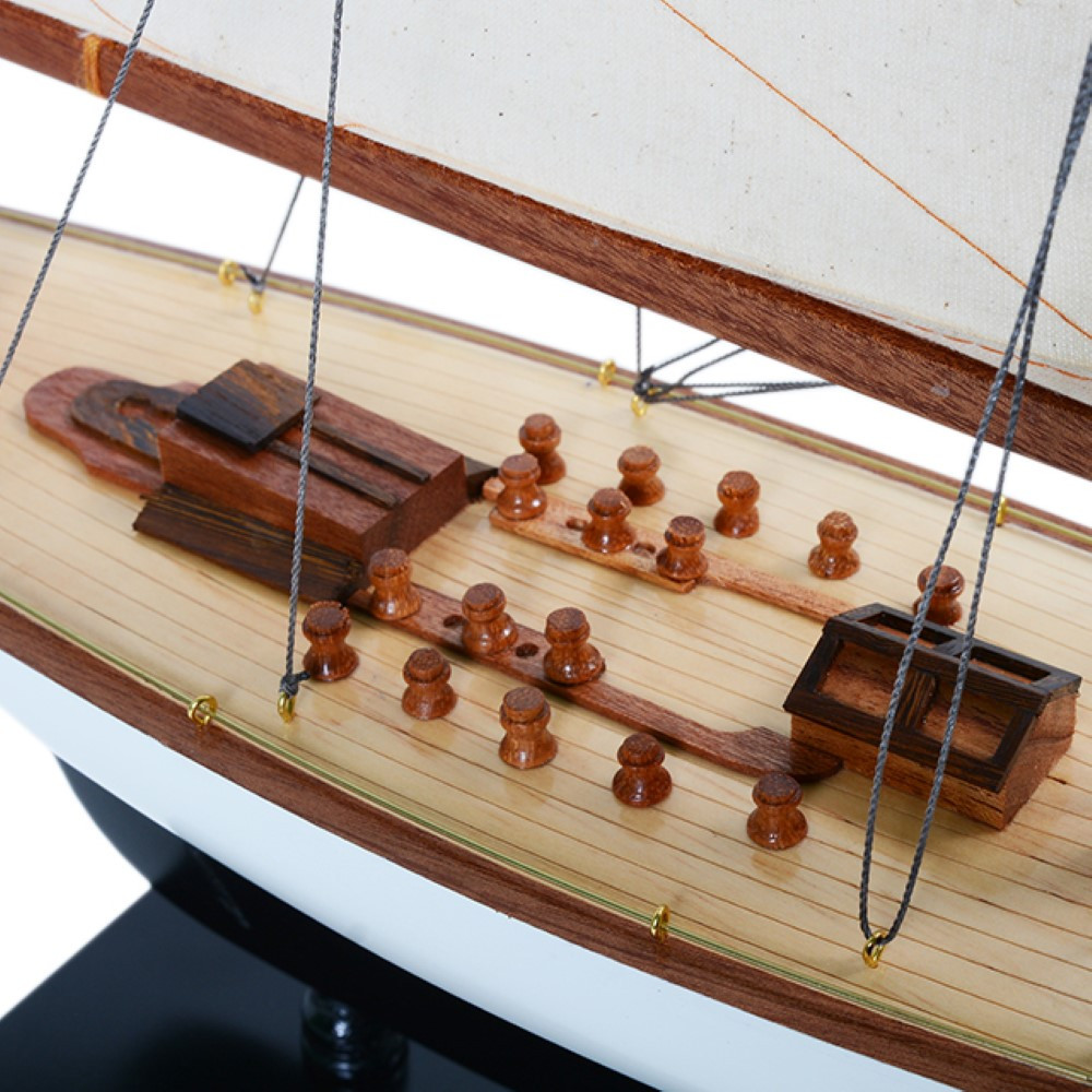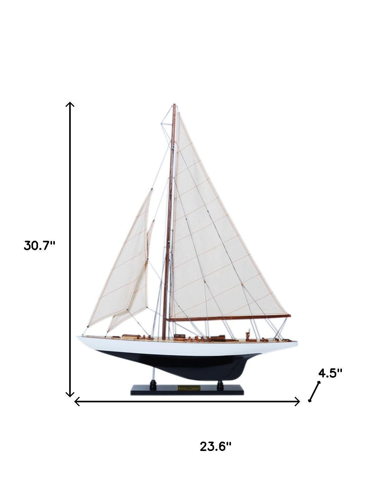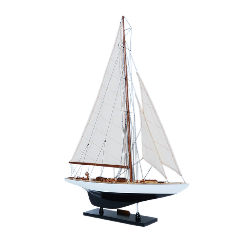 Endeavour Sailboat Schooner Yacht Model- Black & White Painted Small 24 inches long |
