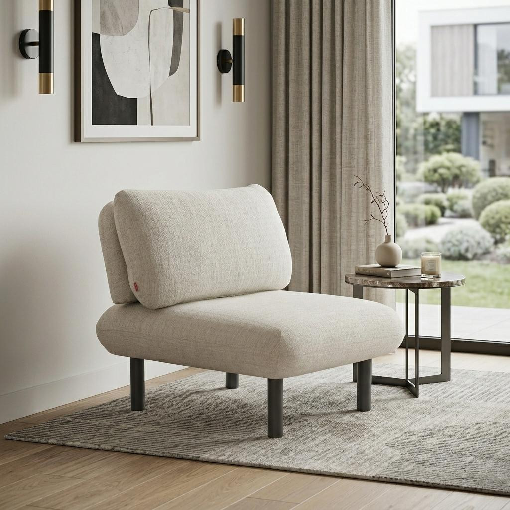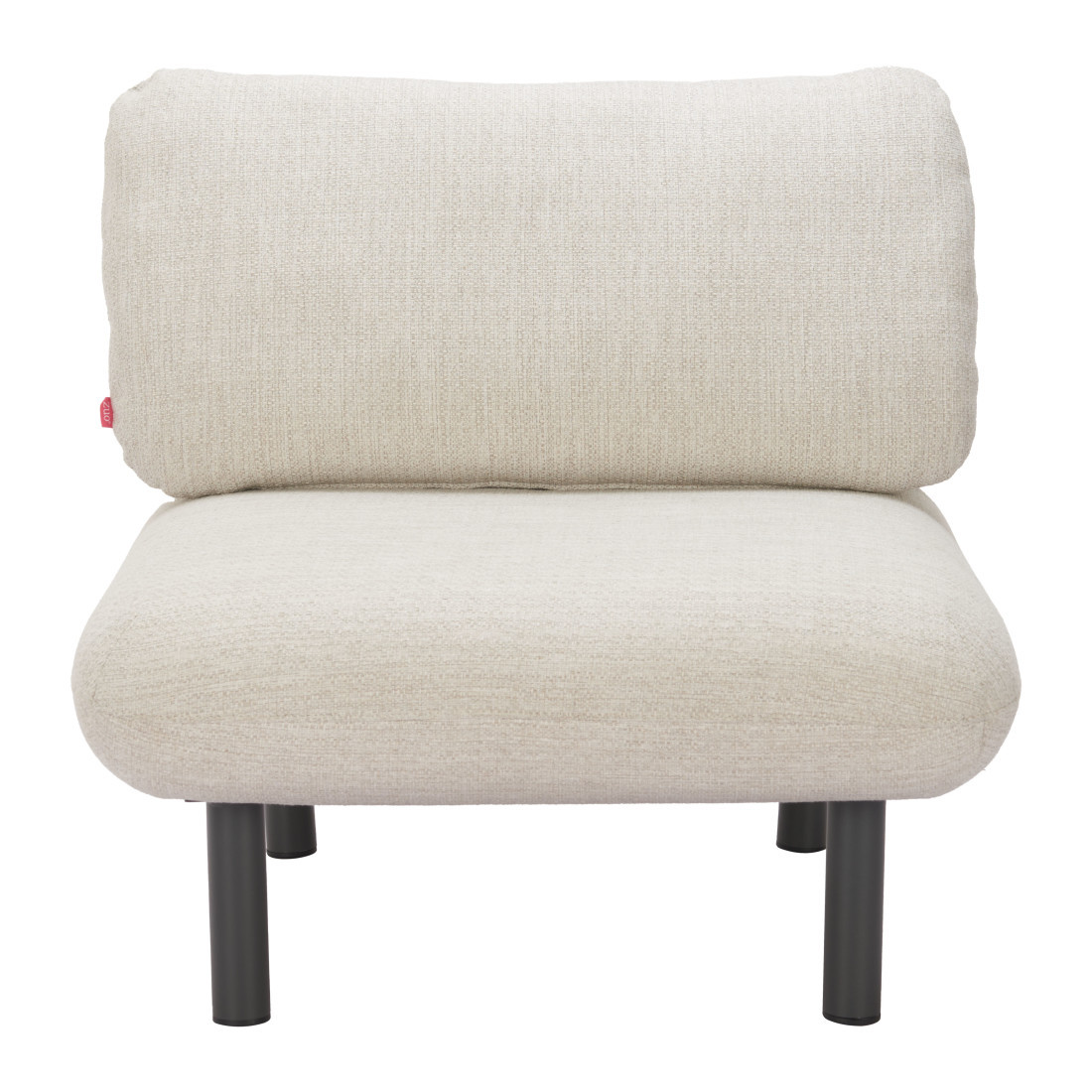 This 33-inch beige and black fabric side chair is the perfect decorative yet functional accessory for your home. This gorgeous solid color beige side chair is masterfully upholstered in durable olefin. The high quality aluminum inner frame flaunts a cushion back that is complimented by soft and comfortable cushioning. Offering the ultimate in home decor flexibility, slipcovered accent chairs allow you to change the look of your room by changing the slipcover. 30.3-inch h x 33-inch w x 37-inch d.