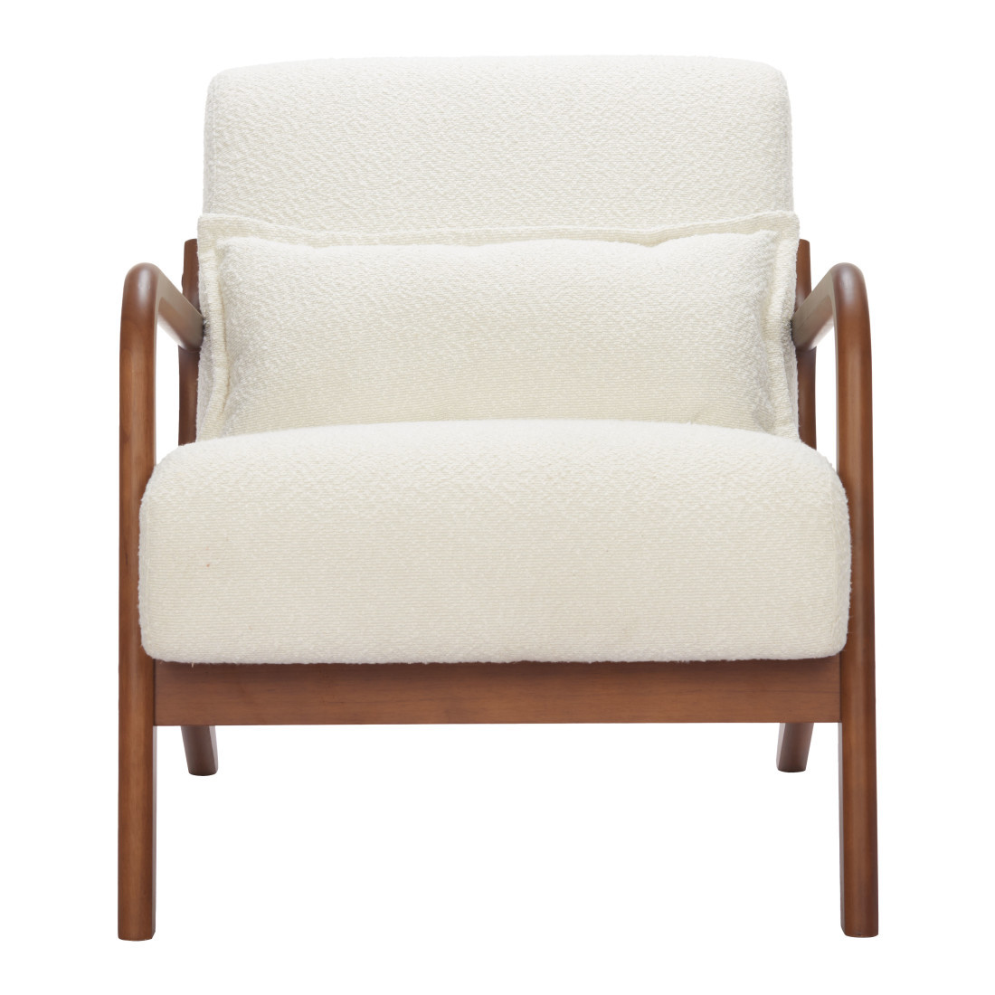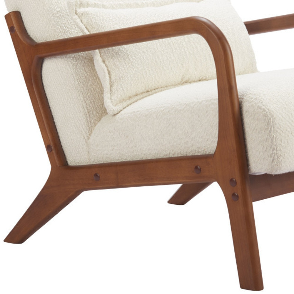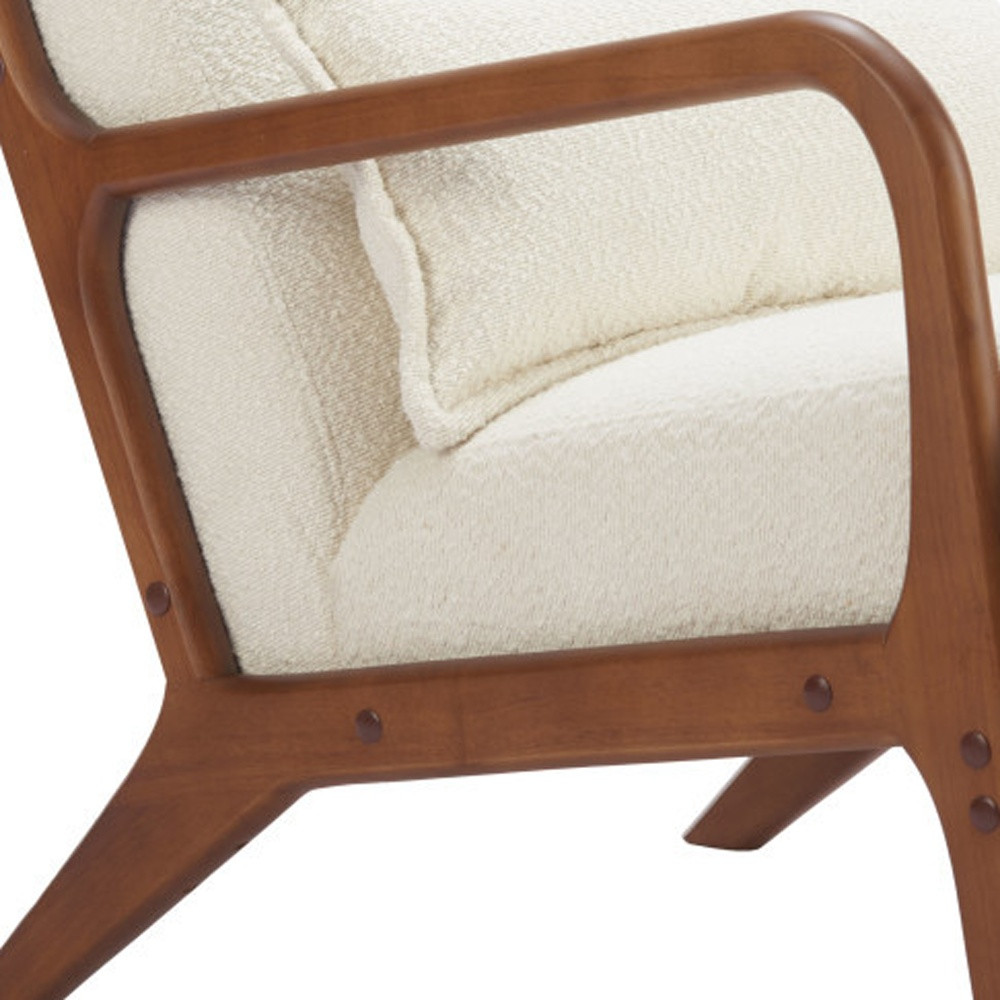 A mix of form and function, this 26-inch cream and natural upholstered arm chair will bring a good looking and usable accent to your space. Built to last this arm chair is finished in solid cream 100% polyester to give your room a great update. The high quality manufactured wood inner frame flaunts convenient armrests and a cushion back that are complimented by soft and comfortable cushioning. 29.10-inch h x 26.00-inch w x 35.00-inch d.