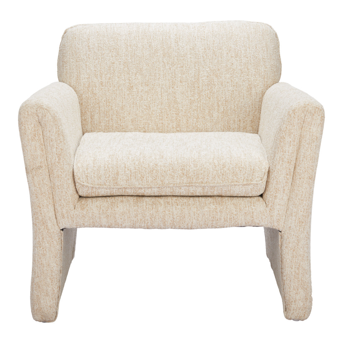 Add an air of fashion to your room and rejuvenate the space with this 33-inch beige upholstered arm chair. This sturdy 100% polyester upholstered arm chair comes in a chic solid beige color to give your space just the right look. Giving the chair stability and structure, the inner frame is constructed with high quality manufactured wood, includes comfy armrests, and features a tight back that comes complete with soft and comfortable cushioning. 30.3-inch h x 33-inch w x 30-inch d.