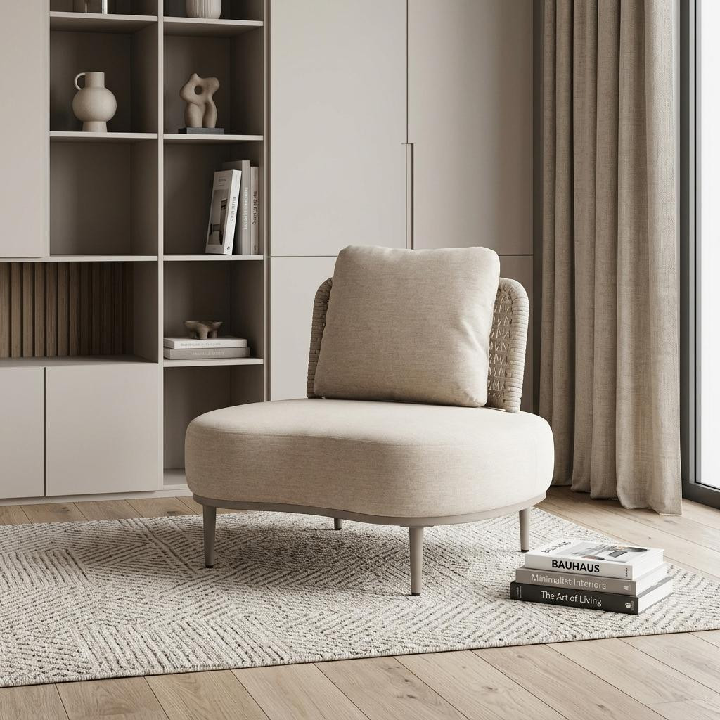 This 43-inch beige fabric side chair will add a beautiful decorative accent to your decor. This sturdy olefin upholstered side chair comes in a chic solid beige color to give your space just the right look. Giving the chair stability and structure, the inner frame is constructed with high quality aluminum and features a cushion back that comes complete with soft and comfortable cushioning. A versatile slipcover is included as part of the design, allowing you to change up the look of your room with a change of the cover. 33.5-inch h x 43-inch w x 36-inch d.