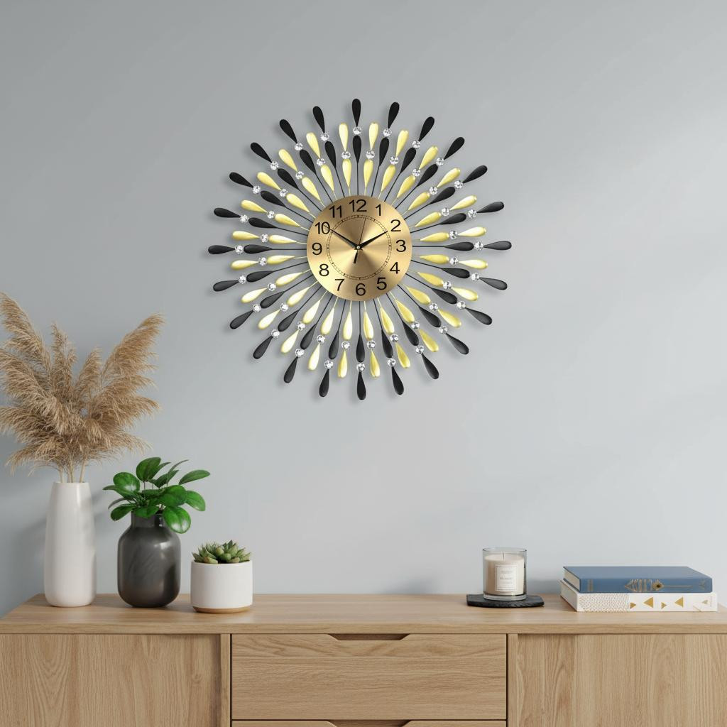 silent analog starburst wall clock, analog starburst wall clock, metal silent analog starburst wall, black metal silent analog starburst, starburst wall clock |