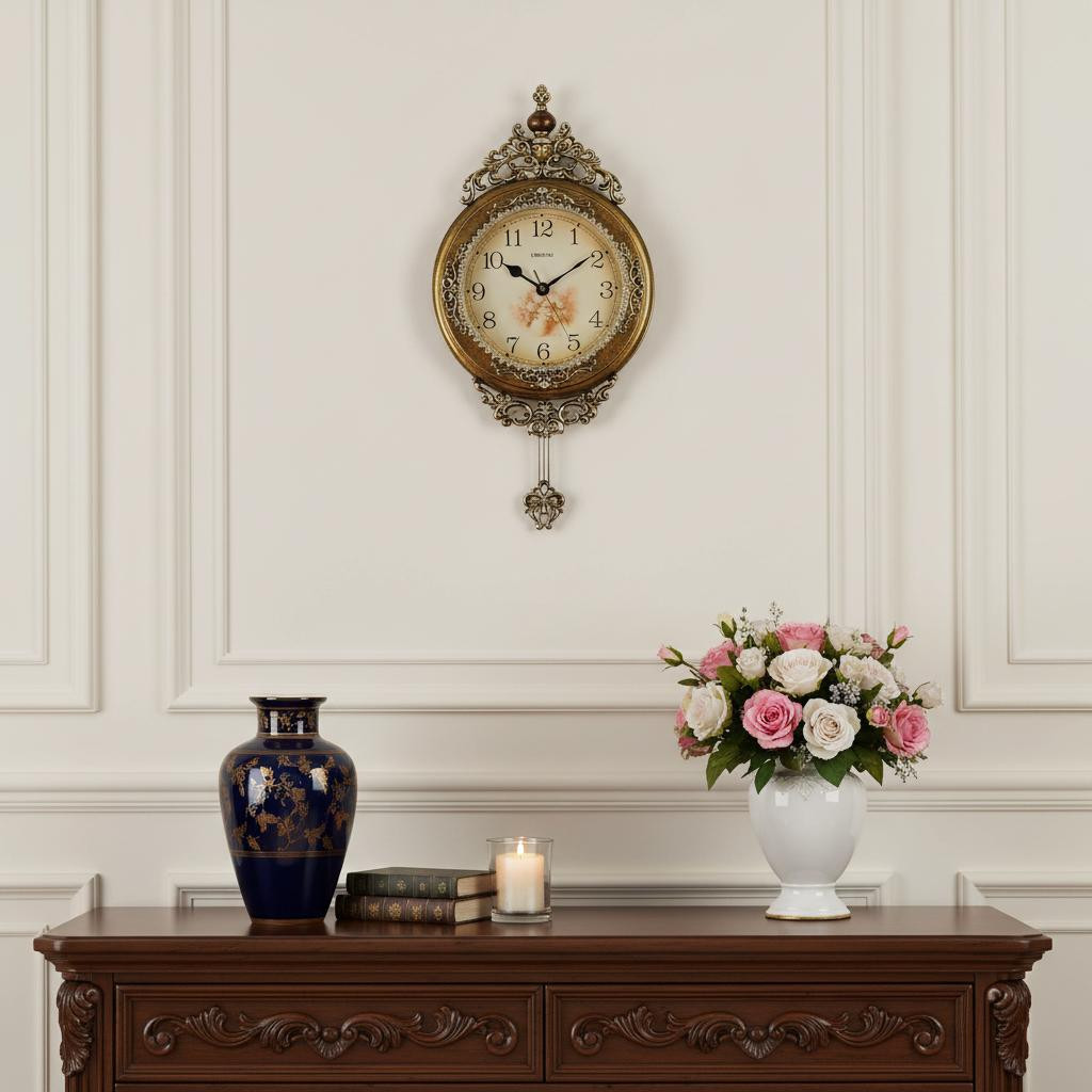 pendulum ornate round wall clock, silver resin silent pendulum ornate, gold silver resin silent pendulum, resin silent pendulum ornate round, silent pendulum ornate round wall |
