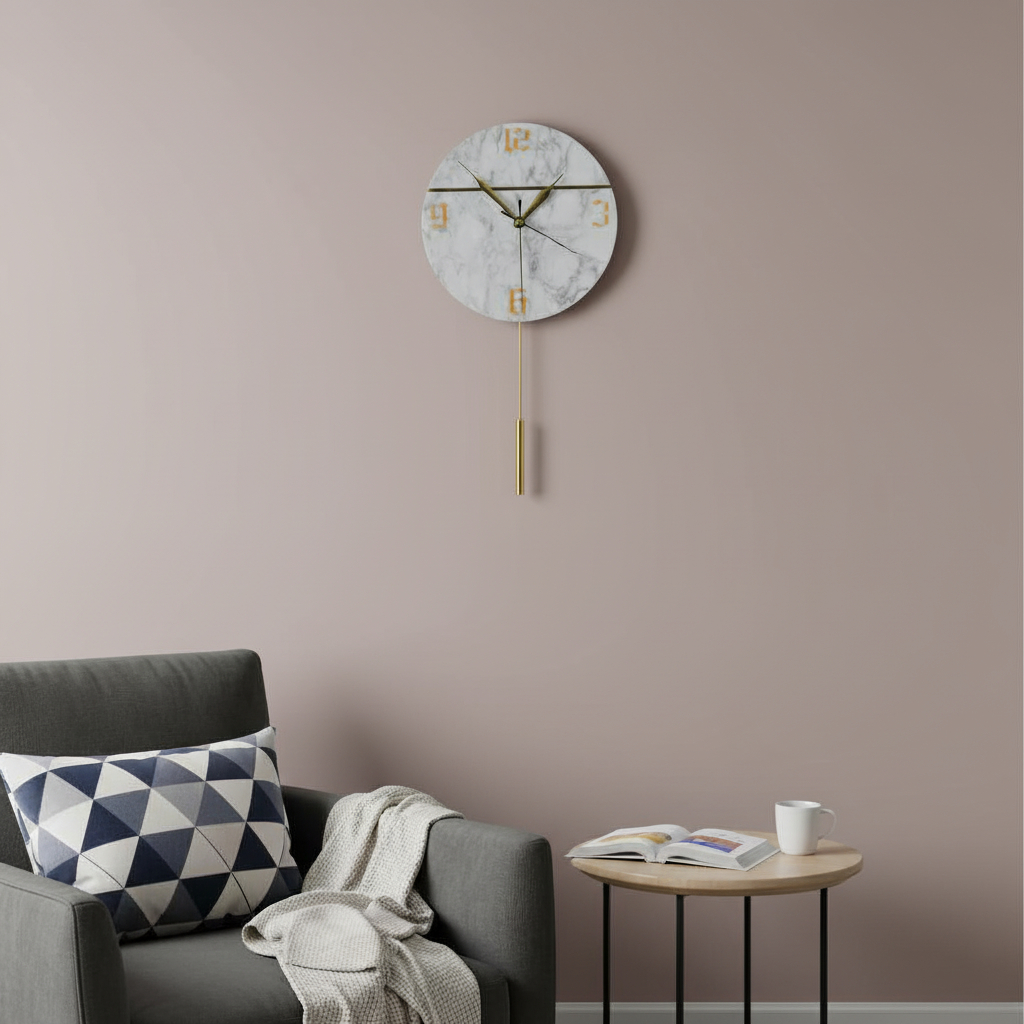 pendulum marble round wall clock, marble round wall clock, white gold marble silent pendulum, gold marble silent pendulum marble, silent pendulum marble round wall |
