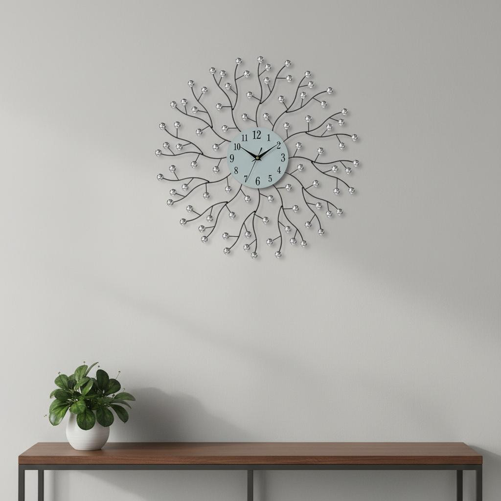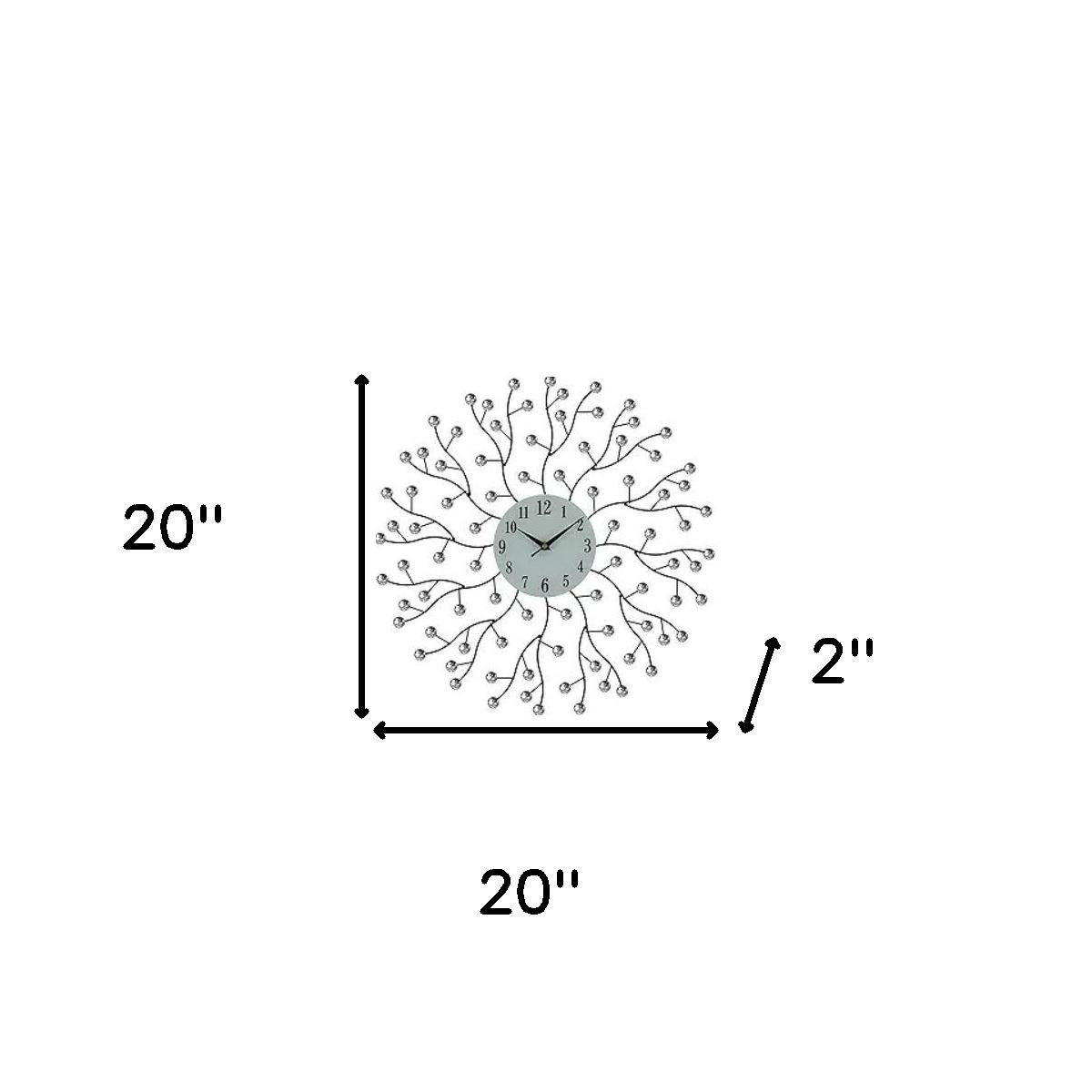 This 20-inch black white and clear metal and glass silent analog round wall clock includes three moving hands on the face that move smoothly to indicate the hour, minute and seconds. Has a traditional round shape, which brings an essence of wholeness to your home. The clock face not only looks good but is beautiful and uniquely made from glass. Elevate the decor of any room in your house. The eye-catching makeup of this clock will ensure that you never run late again. 20-inch h x 20-inch w x 2-inch d.