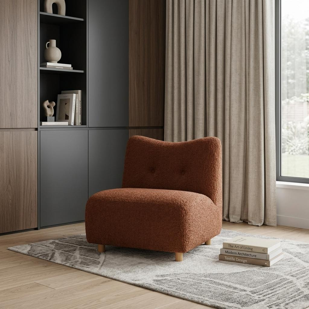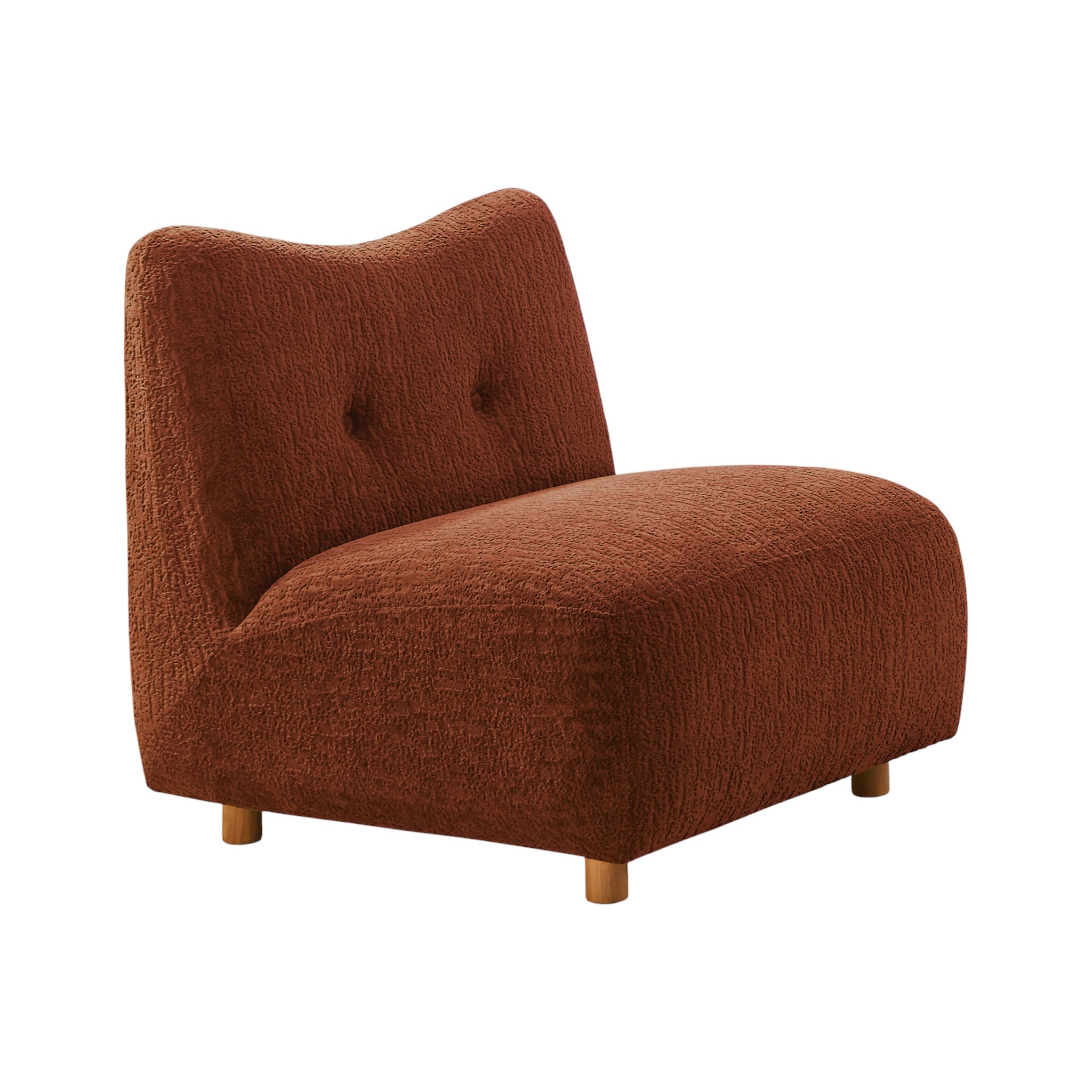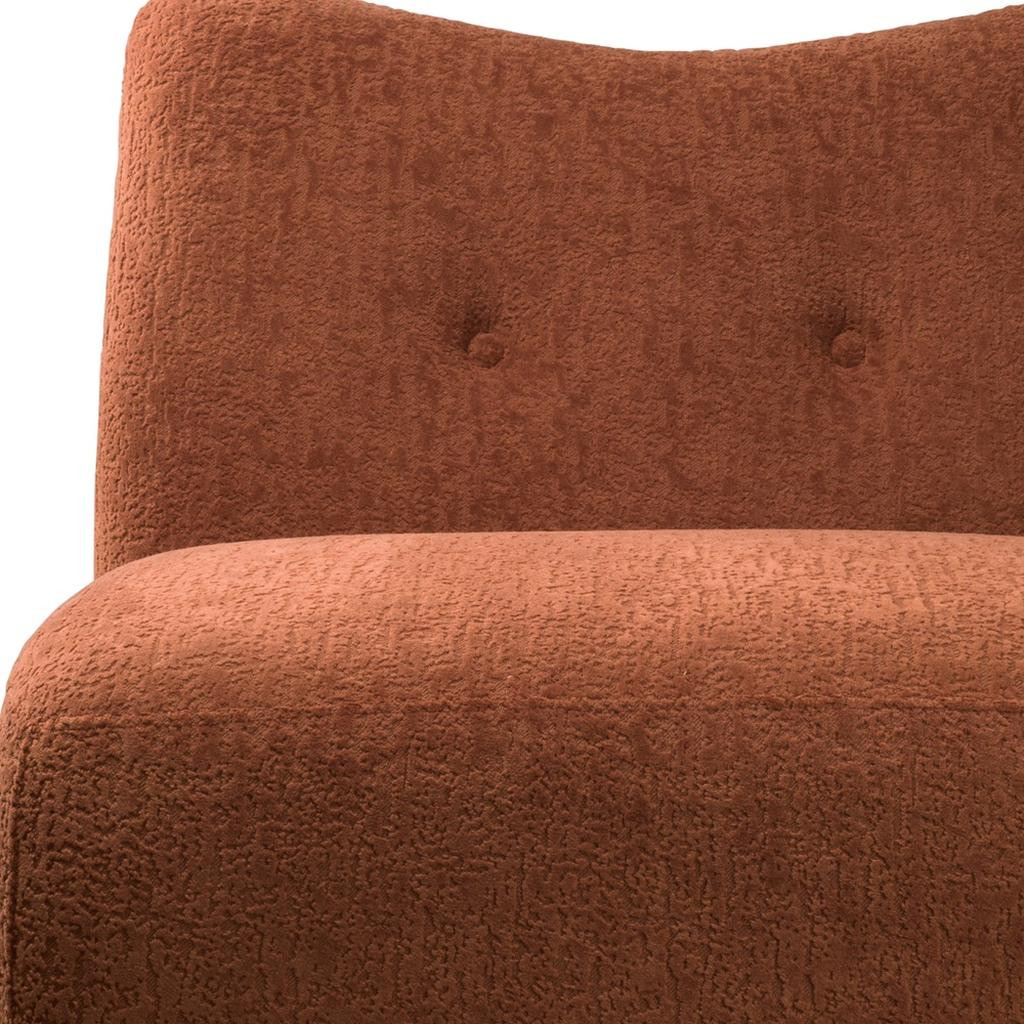 Unique and decorative, this 31-inch orange and natural fabric side chair will leave a lasting impression. This gorgeous solid color orange side chair is masterfully upholstered in durable fabric. The sturdy inner frame is built with high quality manufactured wood, featuring a tufted back that is accented with soft and comfortable cushioning. 28.94-inch h x 30.71-inch w x 29.92-inch d.