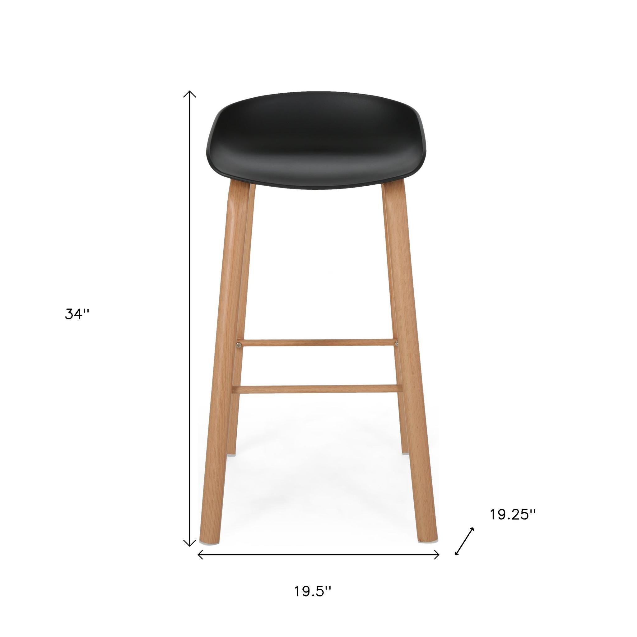 Comfort and design come together nicely in this set of two black and natural heavy duty plastic and wood backless bar height bar chairs. The black heavy duty, curved plastic seat of this stool is a nice contrast to the high quality, natural solid and manufactured wood of the base. Designed to be good looking and practical, this backless bar stools feature a bucket shaped seat. Add some modern style to your space with these stools that are unique, comfortable, and chic. 34.00-inch h x 19.25-inch w x 19.50-inch d.