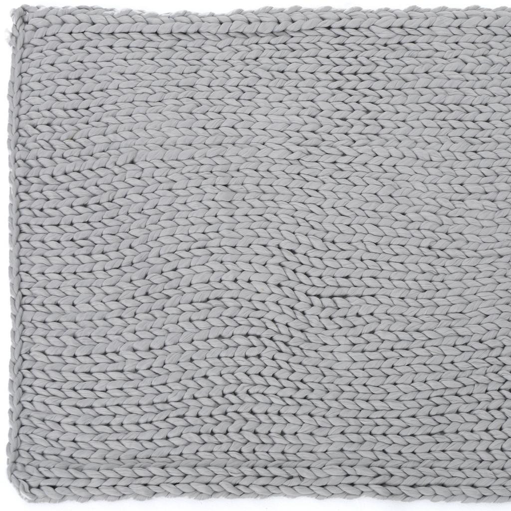 This 50-inch x 60-inch light gray wool acrylic blend knitted plush throw blanket is an essential for any cozy abode. This plush throw is cozy soft beyond belief and oh-so-giftable. Hot cocoa tastes better with a cozy blanket. This textural knitted offering is the perfect pick those cozy winter nights in. Made from wool acrylic blend this blanket will make a great addition to any room it's added to. Add extra texture to your decor and turn your room into an inviting space. This cozy throw blanket is sure to become your go-to couch companion. 60-inch h x 50-inch w x 0.5-inch d.