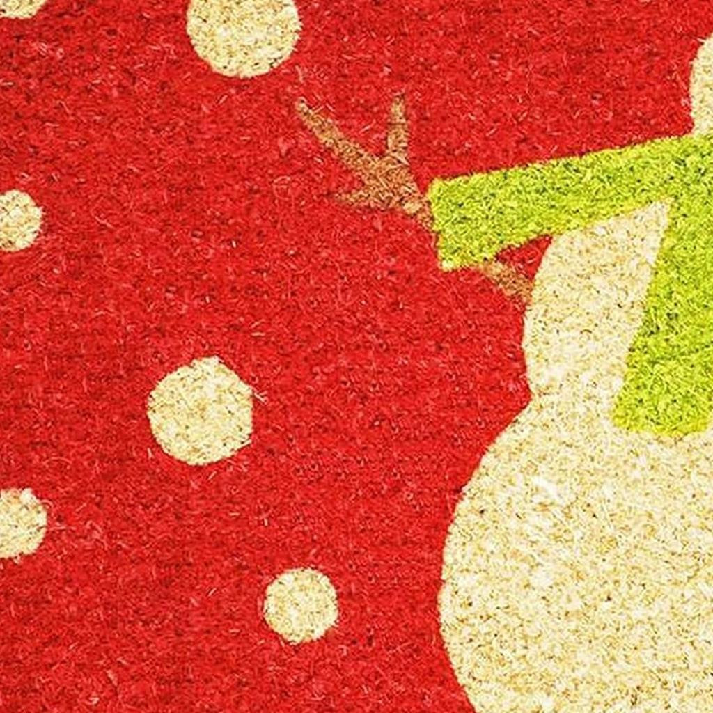 Known for it's extreme durability and ability to withstand heavy foot traffic, this 24-inch x 36-inch red and white coir snowman outdoor Snowman door mat is an ideal option for the front door or entrance way of your home or business. Crafted from coconut husks, this mat is not only functional but is an an eco-friendly and visually appealing accessory. The naturally bristled texture of coir is an efficient way to clean dirt and mud from shoes and is easy to clean and maintain. Add this festive and decorative seasonal mat to create a practical yet inviting welcome to all who enter. 24-inch h x 36-inch w x 0.6-inch d.