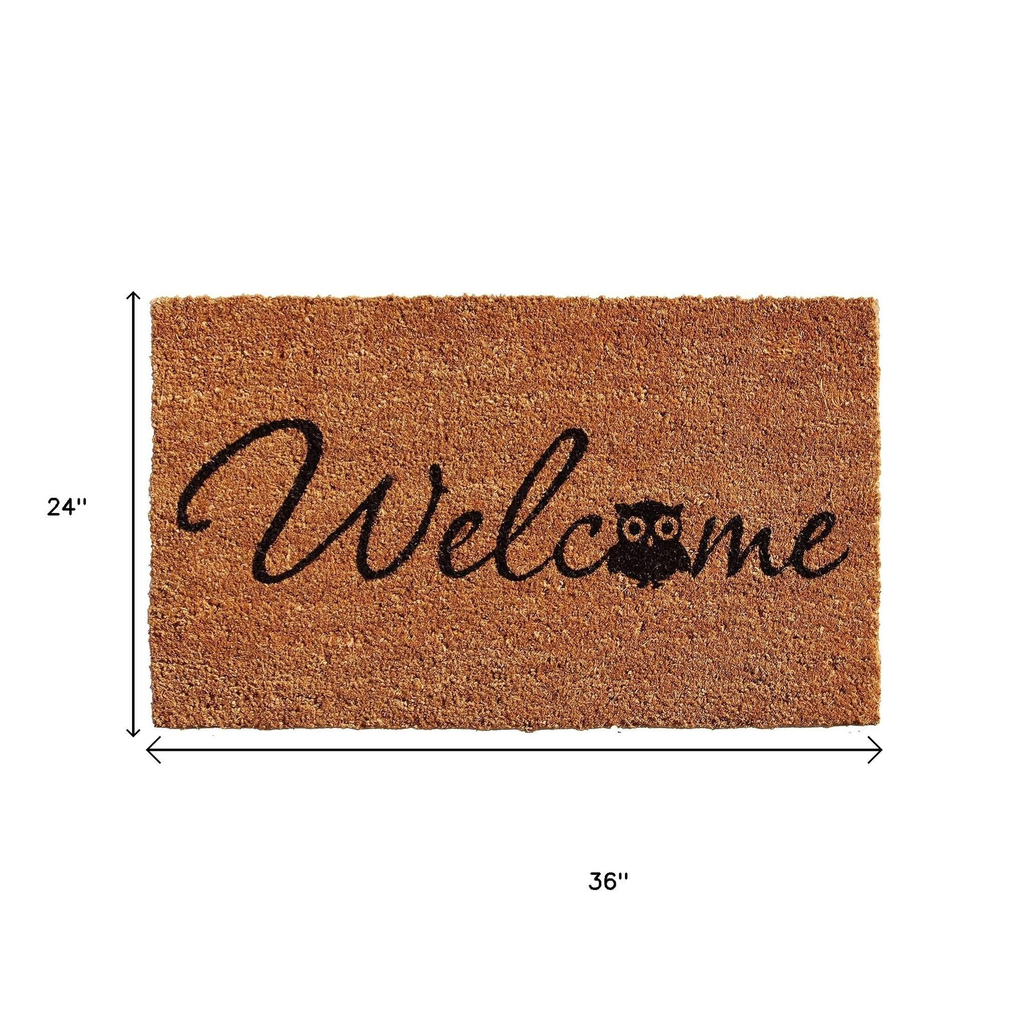 Known for it's extreme durability and ability to withstand heavy foot traffic, this 24-inch x 36-inch natural and black owl welcome outdoor coir door mat is an ideal option for the front door or entrance way of your home or business. Crafted from coconut husks, this mat is not only functional but is an an eco-friendly and visually appealing accessory. The naturally bristled texture of coir is an efficient way to clean dirt and mud from shoes and is easy to clean and maintain. Add this decorative mat to create a practical yet inviting welcome to all who enter. 24-inch h x 36-inch w x 0.6-inch d.