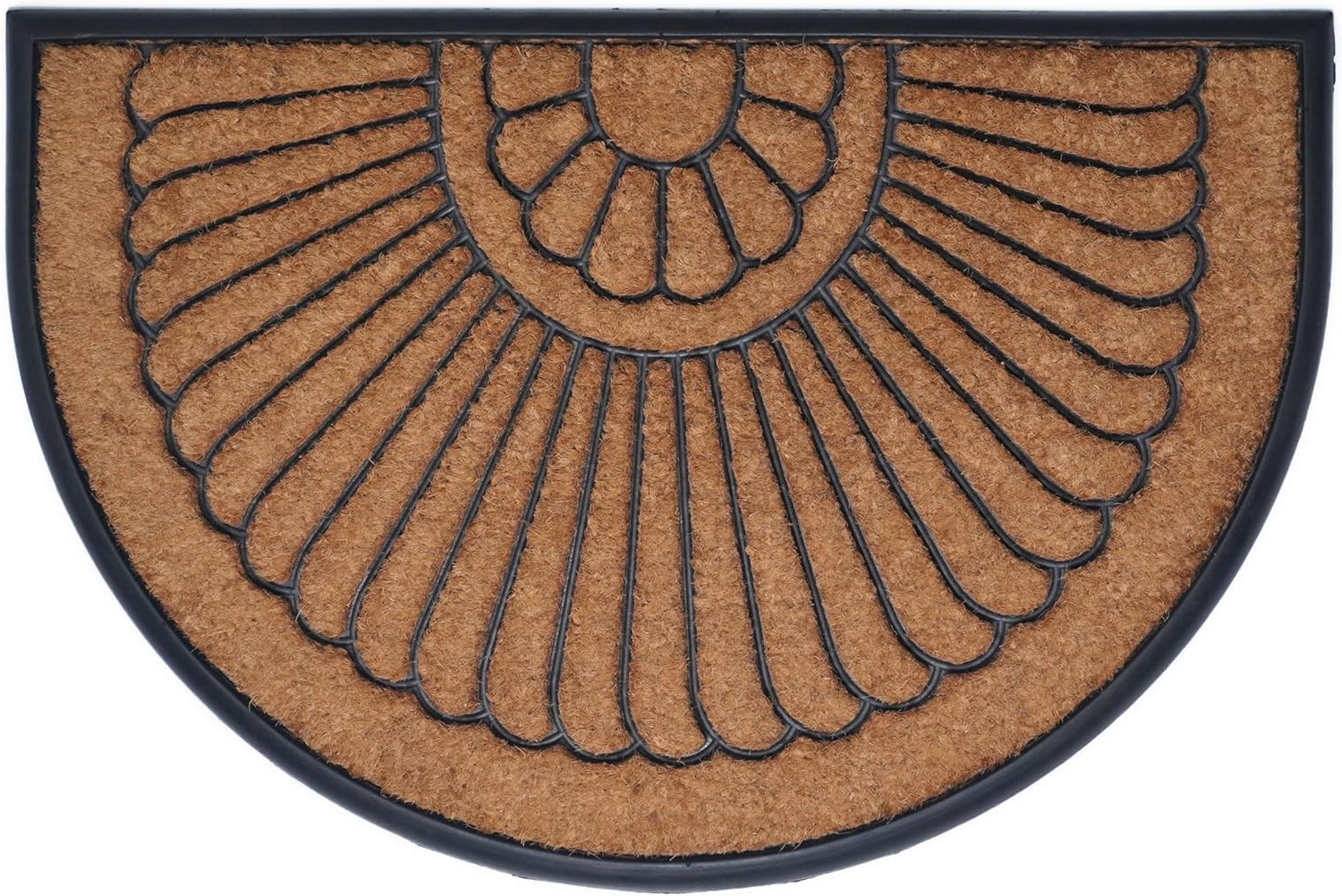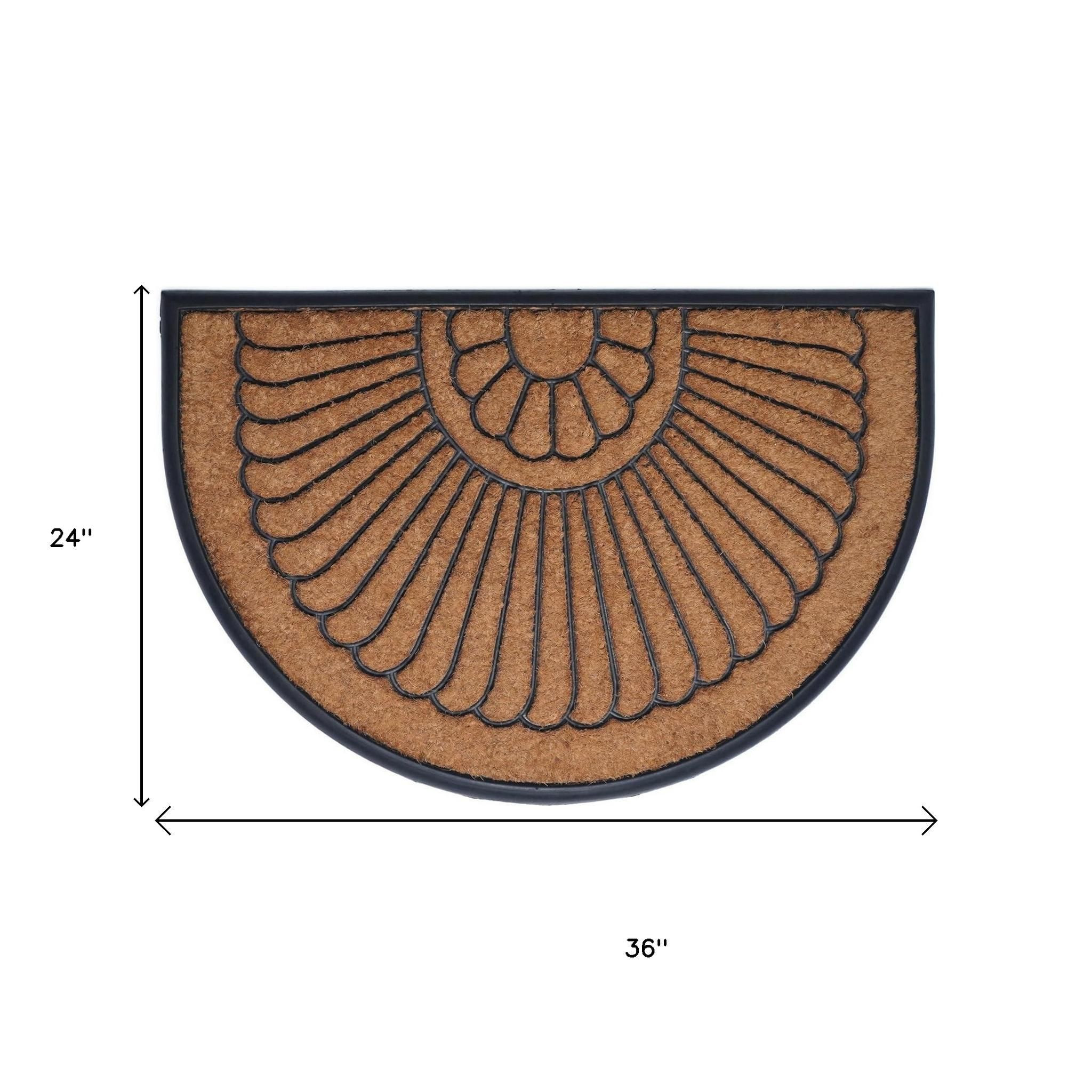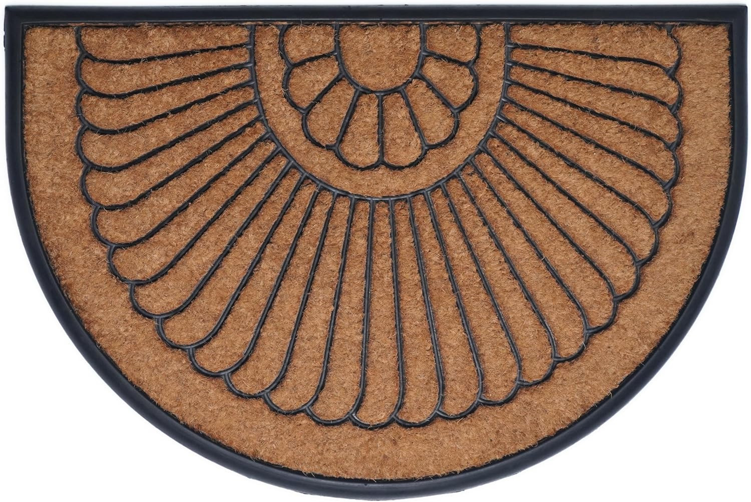 Known for it's extreme durability and ability to withstand heavy foot traffic, this 24-inch x 36-inch black and natural semi circle outdoor coir and rubber door mat is an ideal option for the front door or entrance way of your home or business. The mix of materials are easy to clean and an efficient way to clean dirt and mud from shoes before entry. Crafted from coir and rubber, this mat is not only functional but is a visually appealing accessory to welcome people to your home or business. Add this half moon with lines mat to create a practical yet inviting welcome to all who enter. 24-inch h x 36-inch w x 1-inch d.