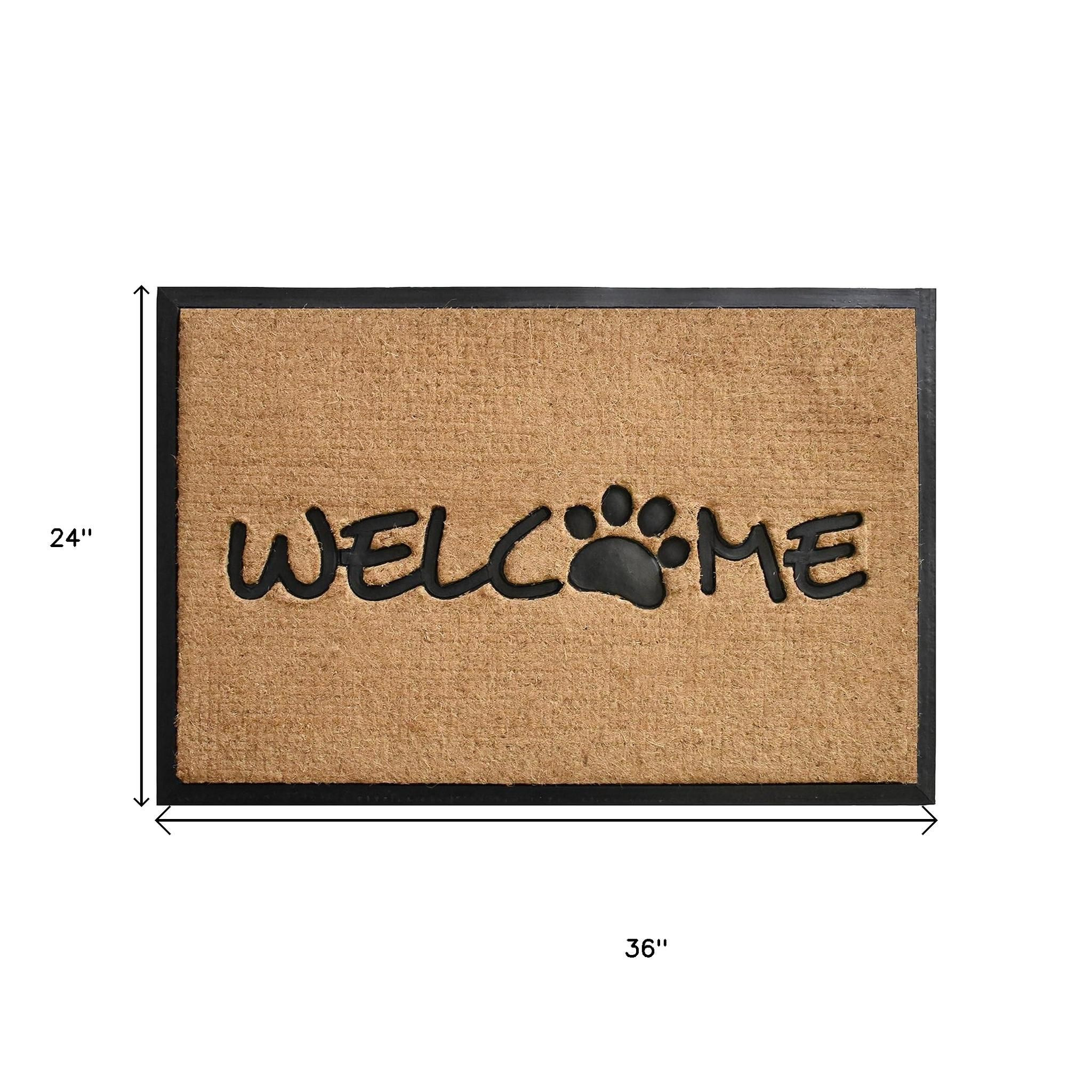 Known for it's extreme durability and ability to withstand heavy foot traffic, this 24-inch x 36-inch natural and black coir welcome outdoor door mat is an ideal option for the front door or entrance way of your home or business. Crafted from coconut husks, this mat is not only functional but is an an eco-friendly and visually appealing accessory. The naturally bristled texture of coir is an efficient way to clean dirt and mud from shoes and is easy to clean and maintain. Add this decorative mat to create a practical yet inviting welcome to all who enter. 24-inch h x 36-inch w x 1-inch d.