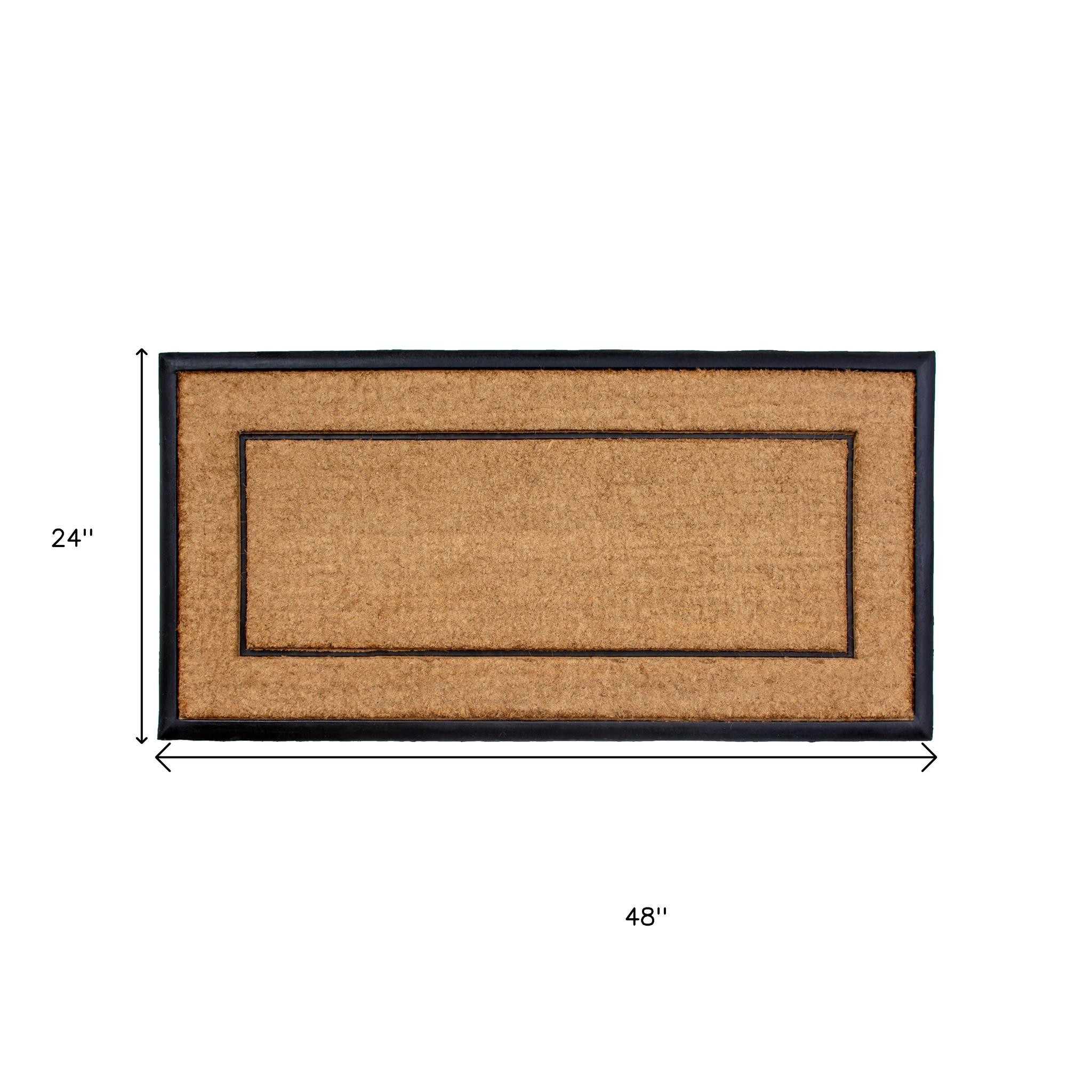 Known for it's extreme durability and ability to withstand heavy foot traffic, this 24-inch x 48-inch natural and black striped border outdoor coir and rubber door mat is an ideal option for the front door or entrance way of your home or business. Crafted from a stylish mix of materials, this mat is easy to clean and is an efficient way to clean dirt and mud from shoes before entry. The modern minimalist design adds a touch of elegance and sophistications to welcome all who enter with style. 24-inch h x 48-inch w x 1-inch d.
