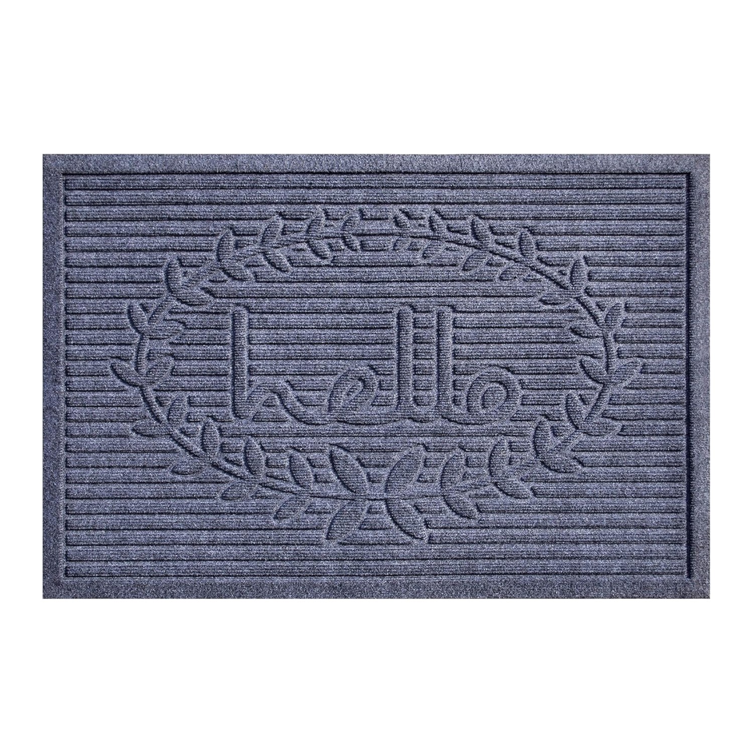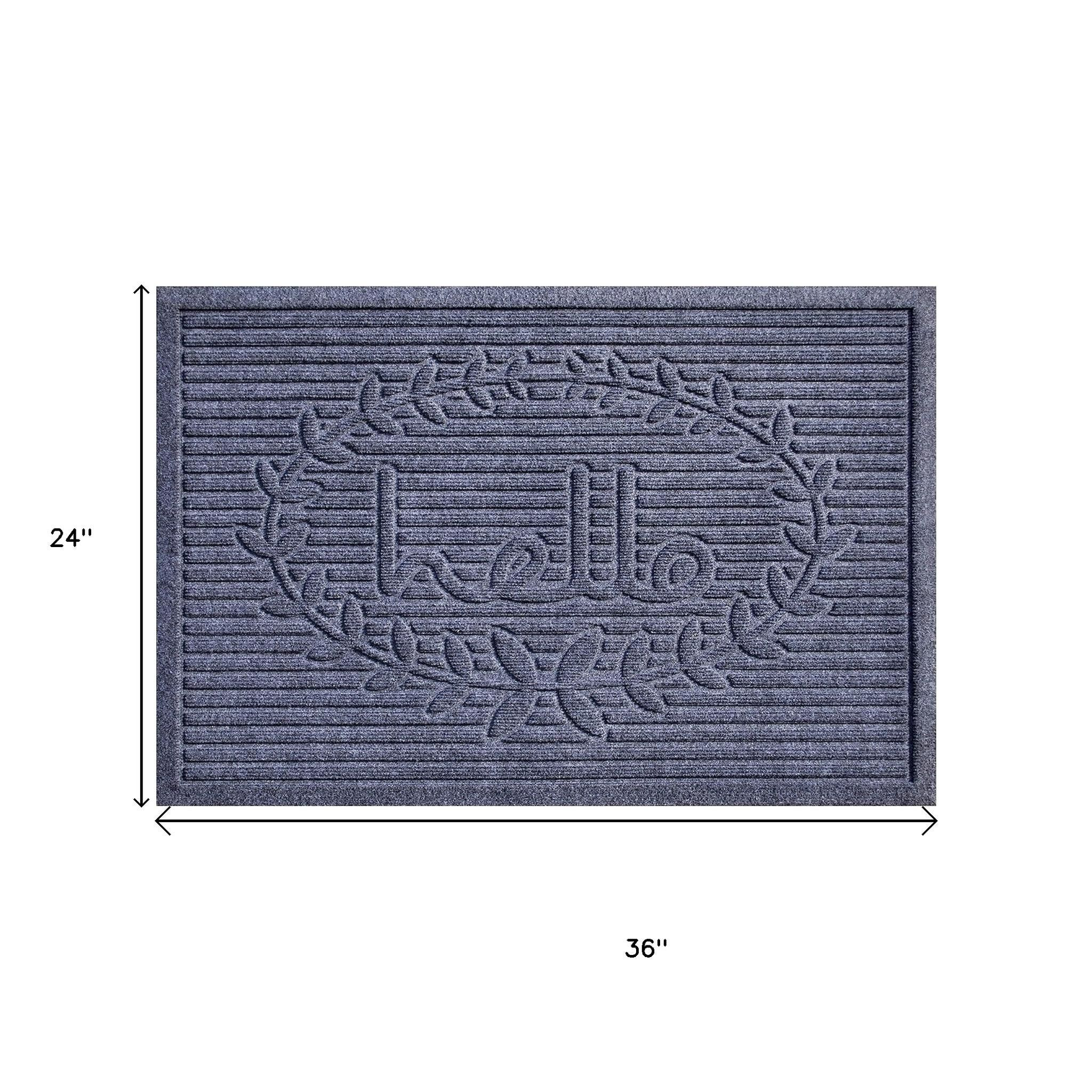 Ready to withstand heavy foot traffic, this 24-inch x 36-inch dark gray polypropylene hello outdoor door mat is an ideal option for the front door or entrance way of your home or business. Crafted from polypropylene with a tone-on-tone textural striped design and the word "hello", this mat is not only functional but is a visually appealing accessory to welcome people to your home or business. Add this decorative mat to create a practical yet inviting welcome to all who enter. 24-inch h x 36-inch w x 0.5-inch d.