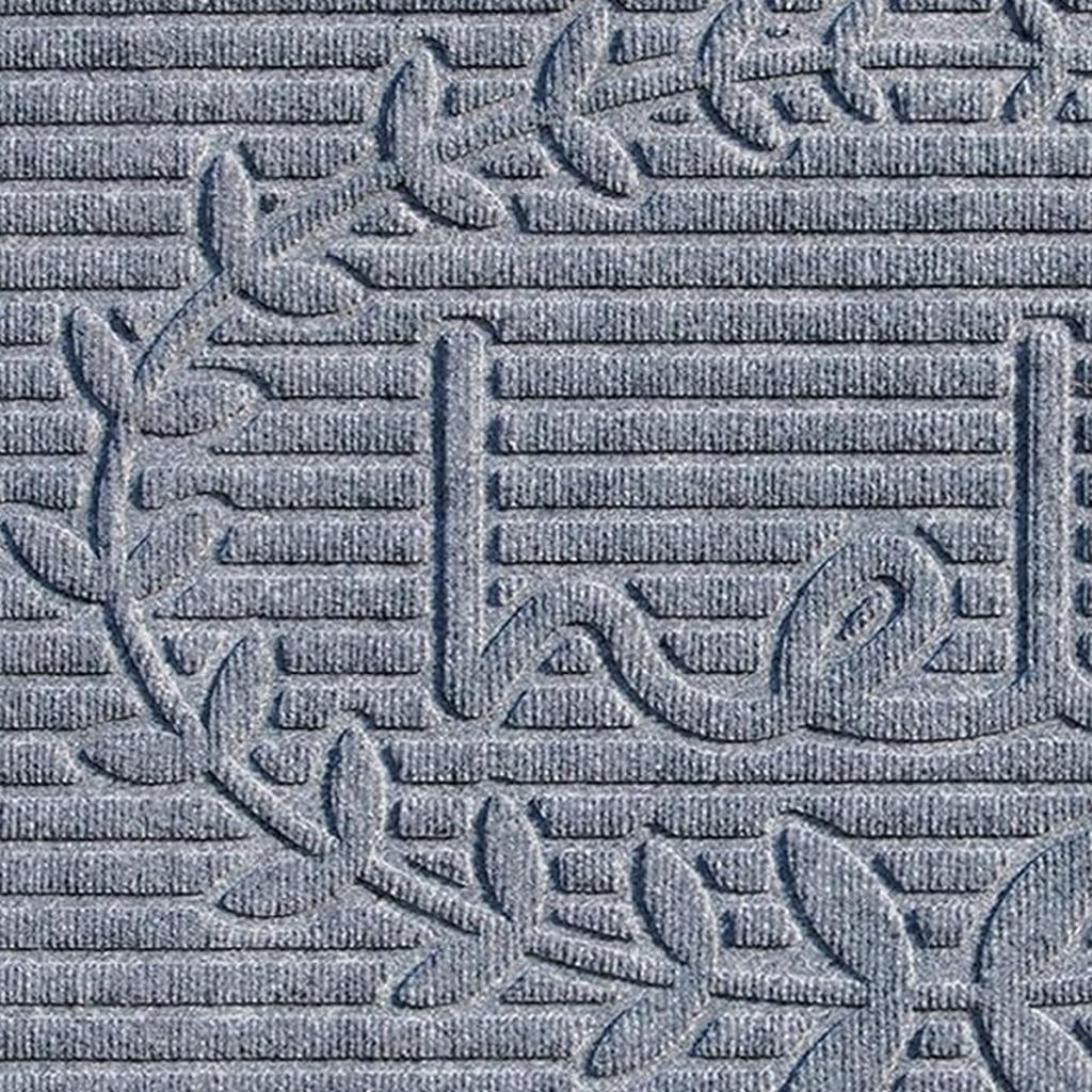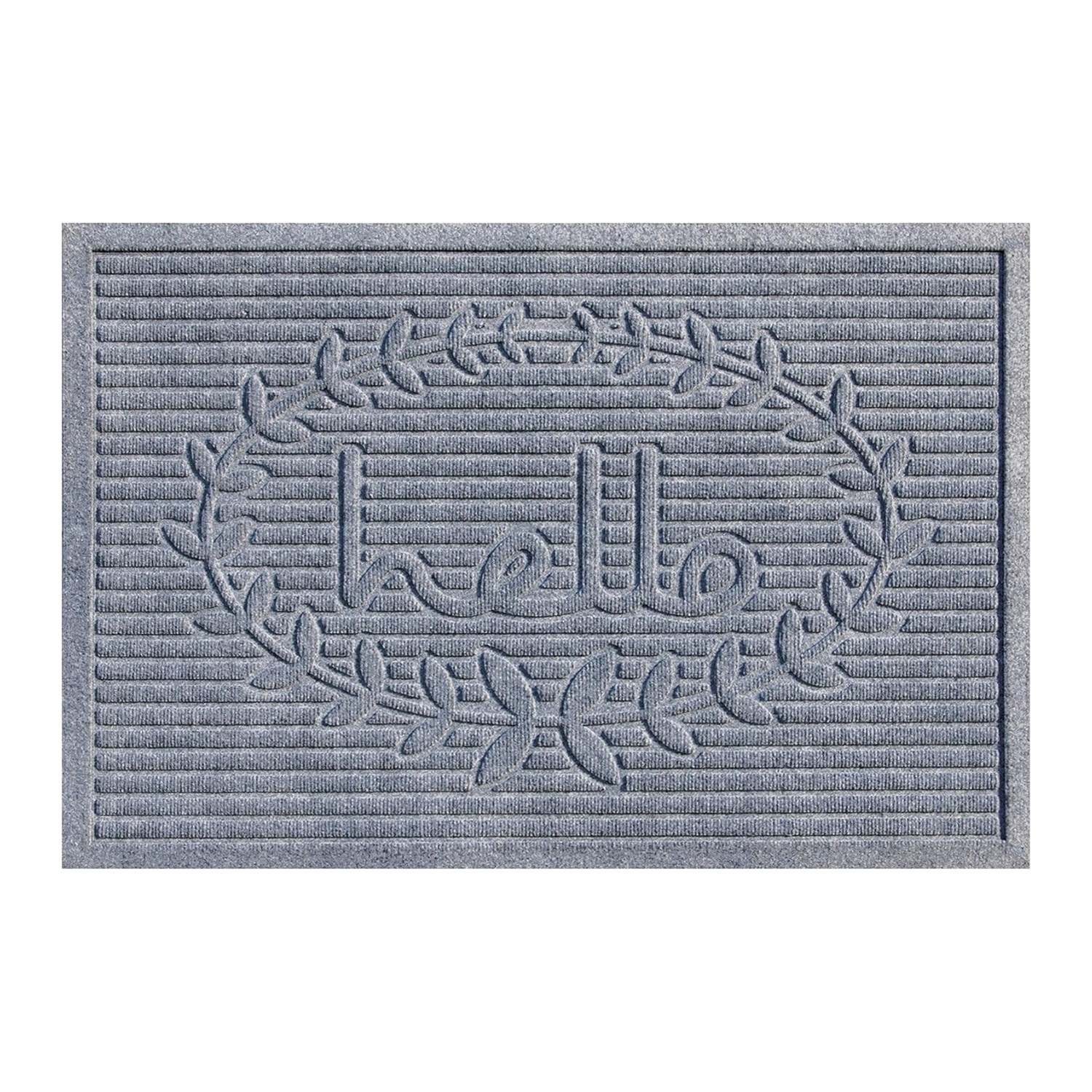 Ready to withstand heavy foot traffic, this 24-inch x 36-inch gray striped hello outdoor polypropylene door mat is an ideal option for the front door or entrance way of your home or business. Crafted from polypropylene with a tone-on-tone striped design and the word "hello", this mat is not only functional but is a visually appealing accessory to welcome people to your home or business. Add this decorative mat to create a practical yet inviting welcome to all who enter. 24-inch h x 36-inch w x 0.5-inch d.