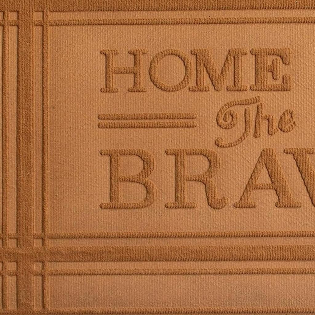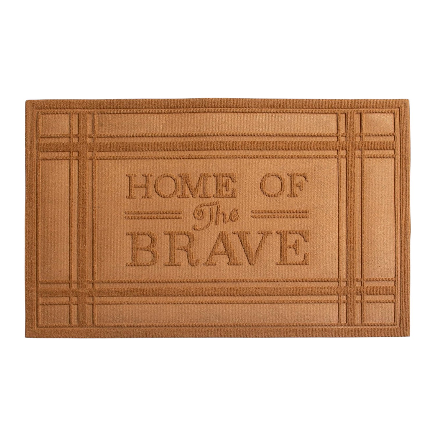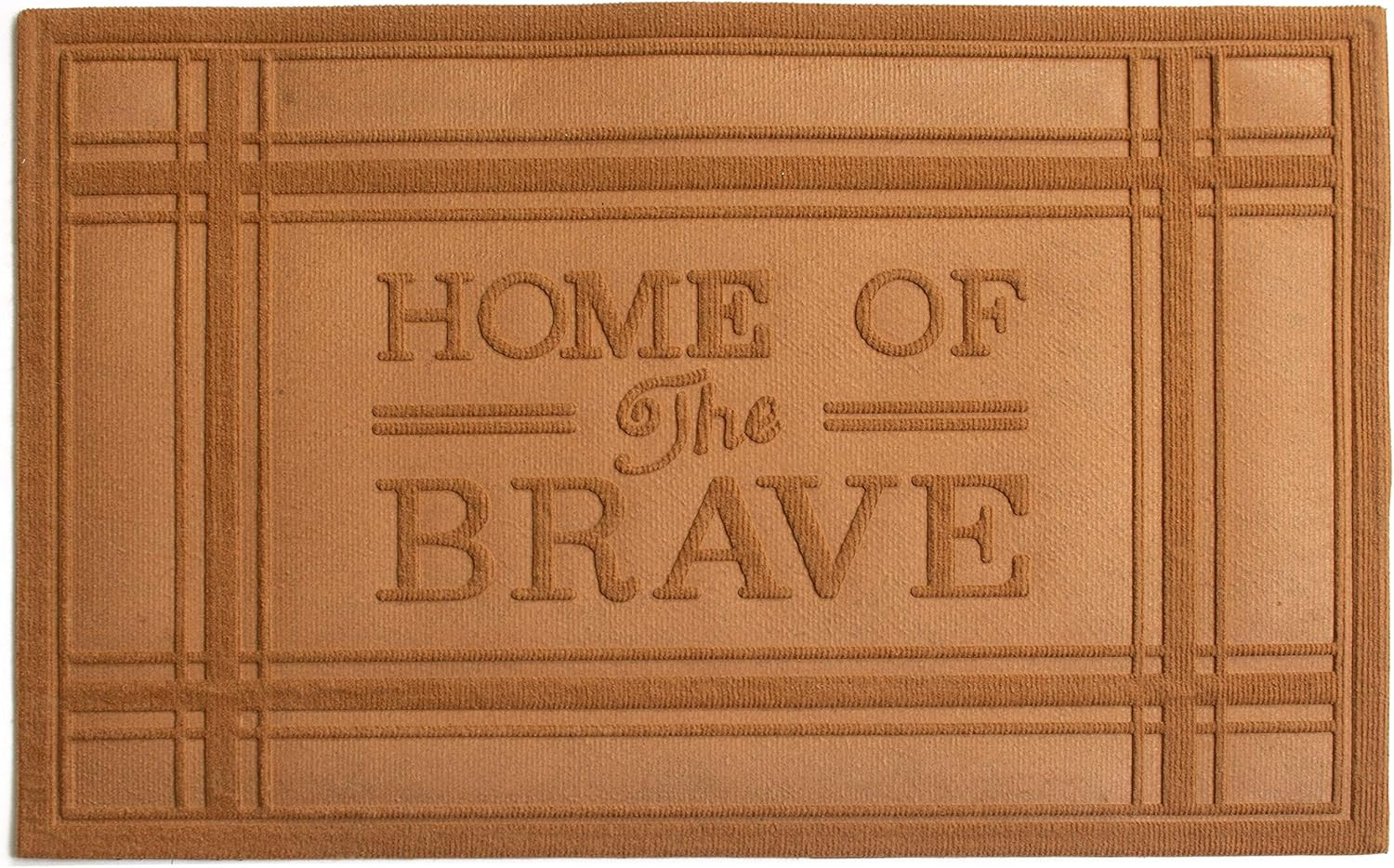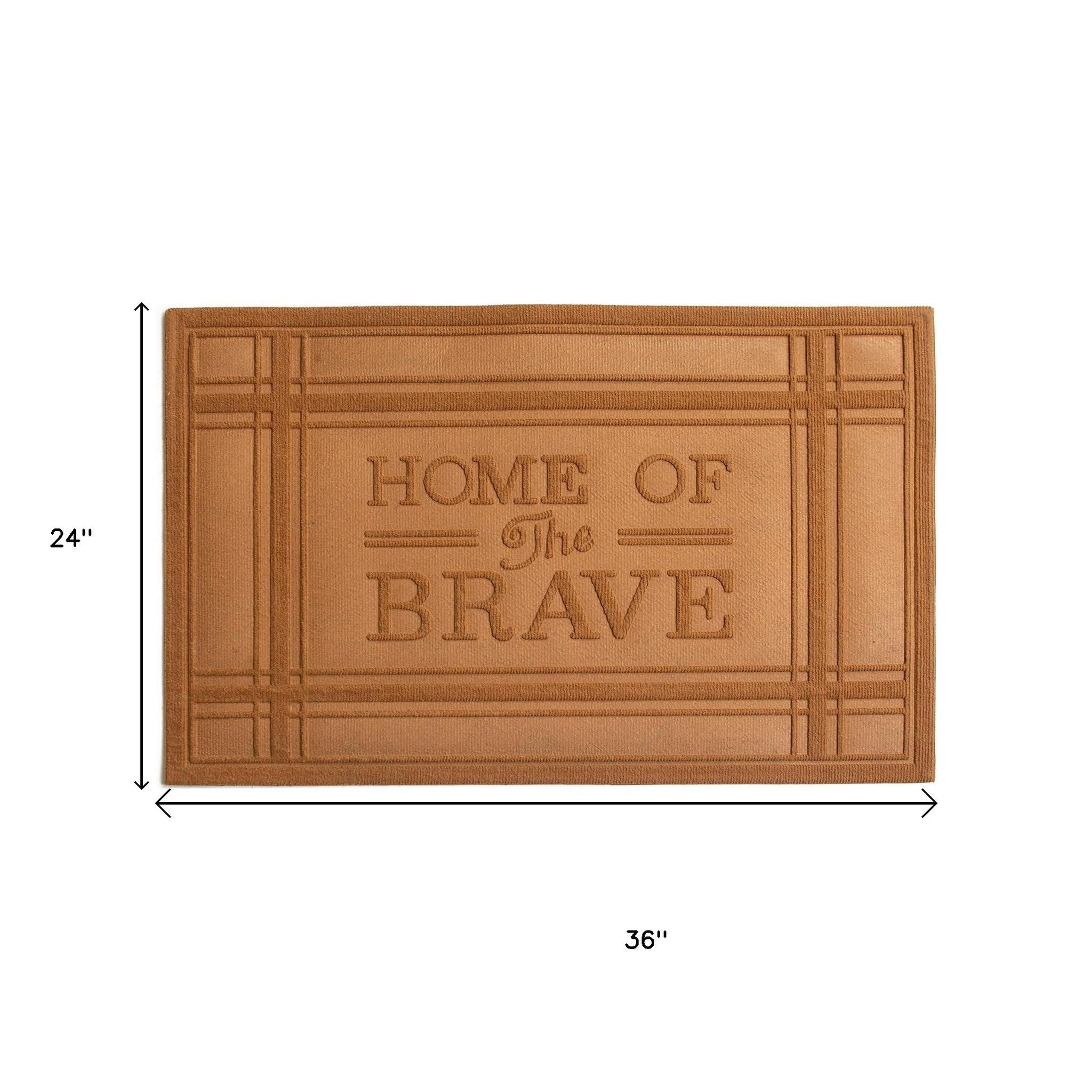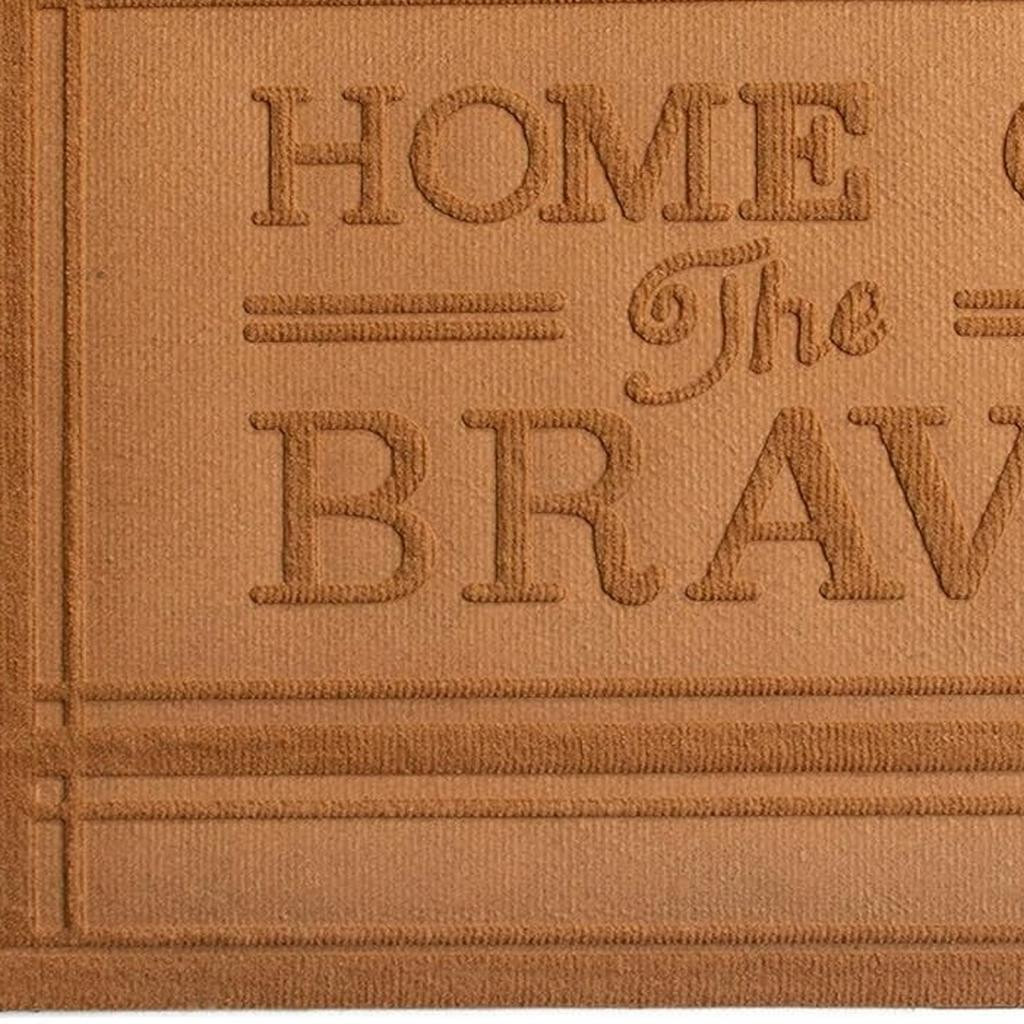 Ready to withstand heavy foot traffic, this 24-inch x 36-inch brown striped border home of the brave outdoor polypropylene door mat is an ideal option for the front door or entrance way of your home or business. Crafted from polypropylene with a tone-on-tone border design and the words "home of the brave", this mat is not only functional but is a visually appealing accessory to welcome people to your home or business. Add this decorative mat to create a practical yet inviting welcome to all who enter. 24-inch h x 36-inch w x 0.5-inch d.