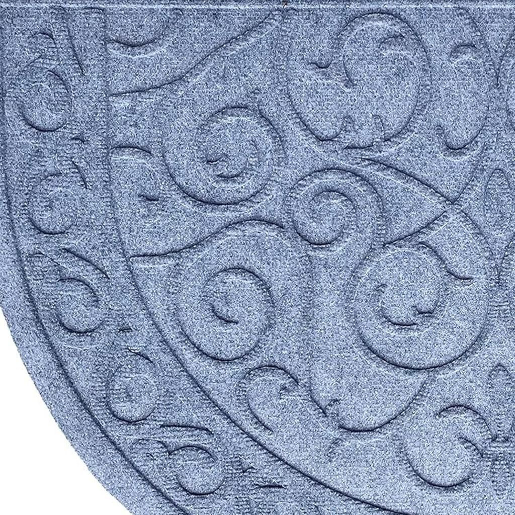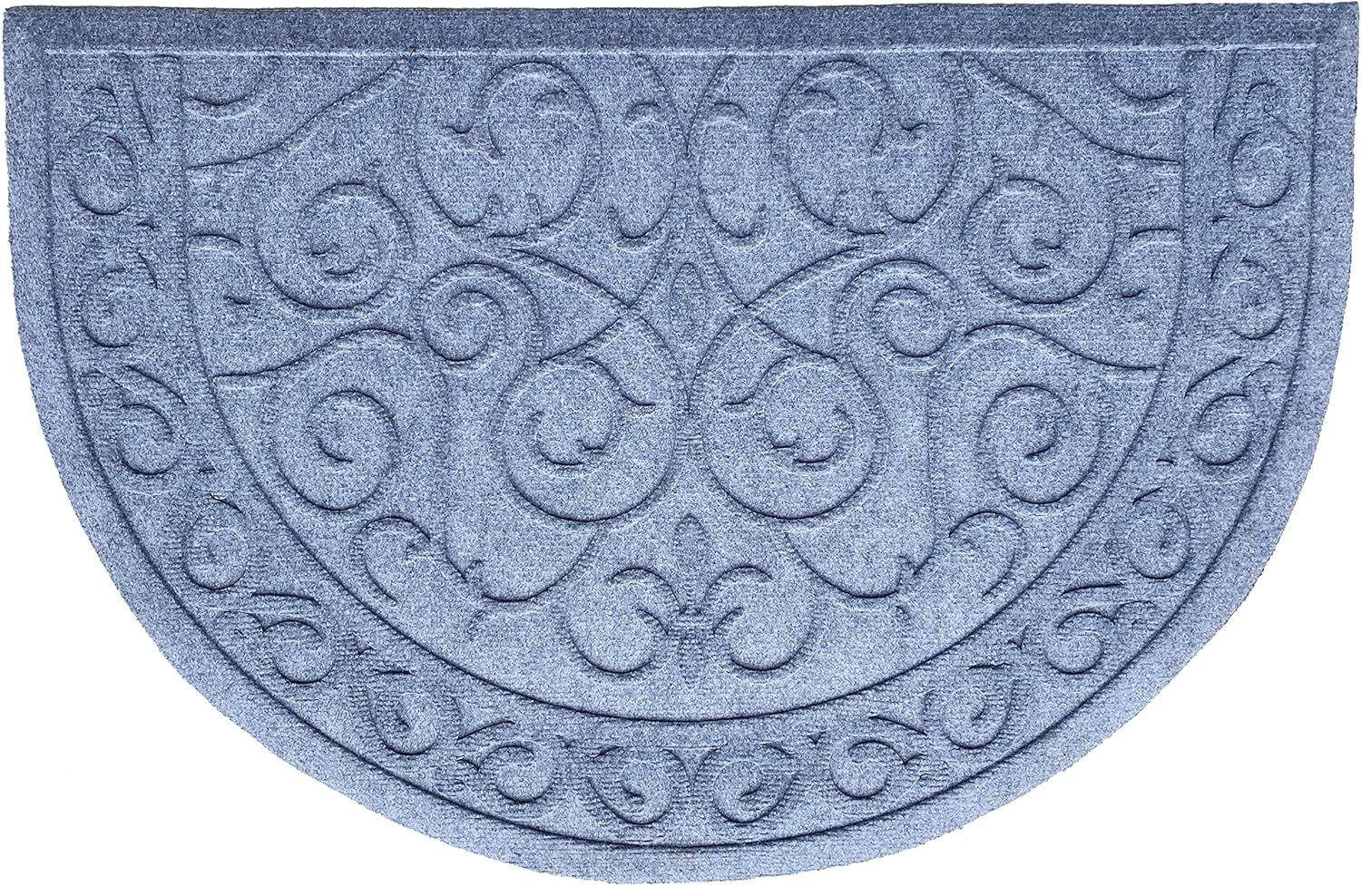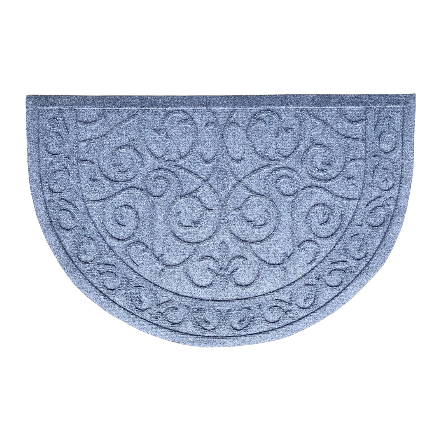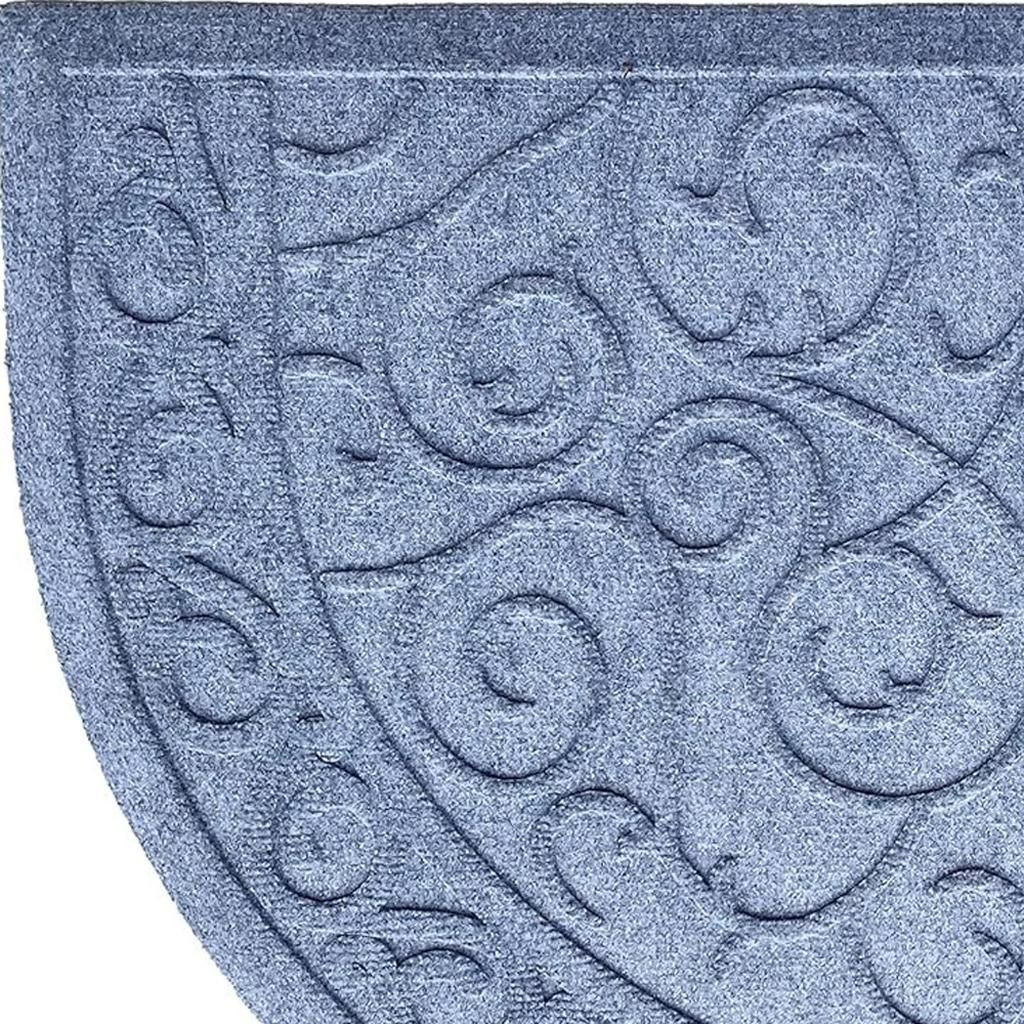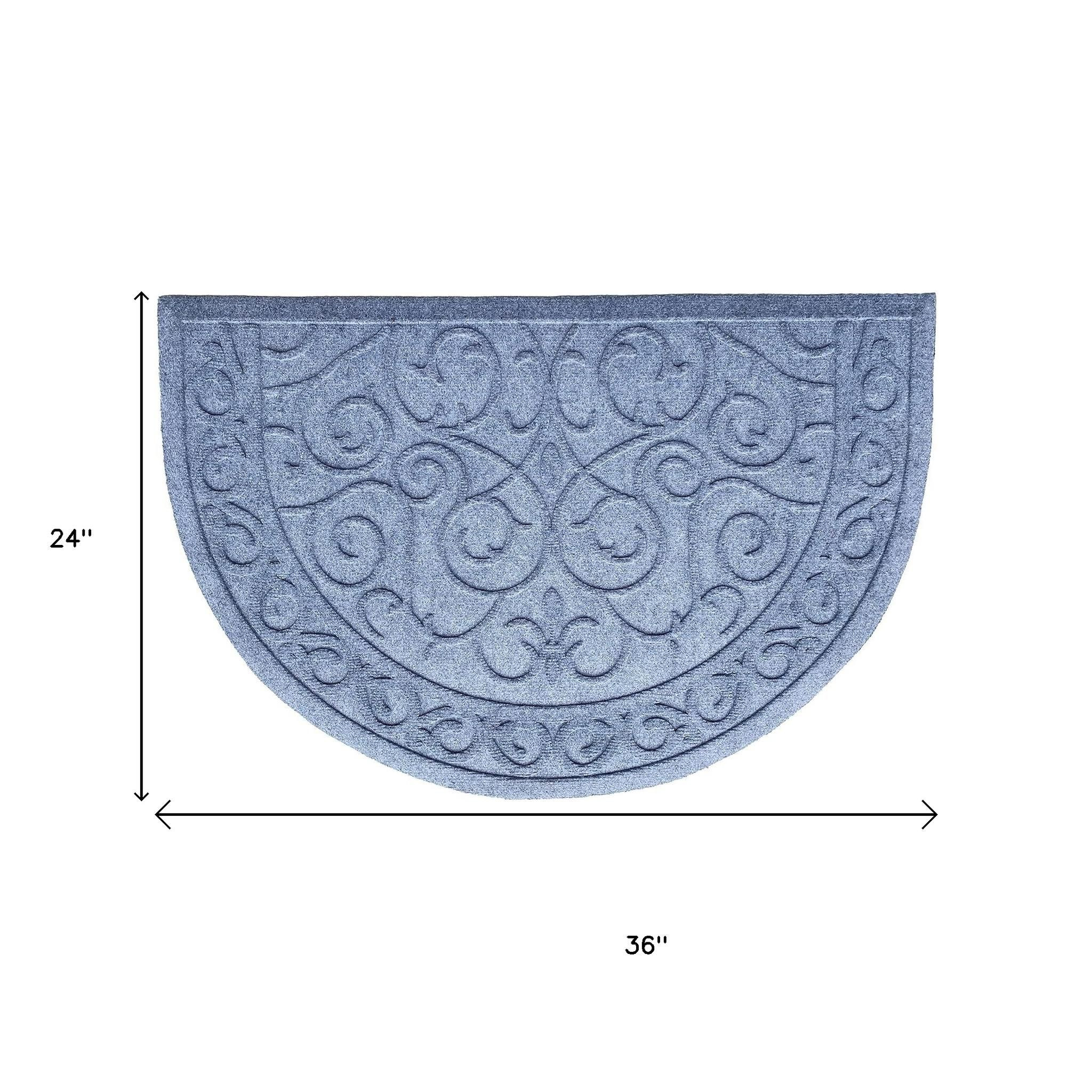 Ready to withstand heavy foot traffic, this 24-inch x 36-inch gray scrollwork semi circle outdoor polypropylene door mat is an ideal option for the front door or entrance way of your home or business. Crafted from polypropylene with a tone-on-tone scrollwork design, this mat is not only functional but is a visually appealing accessory to welcome people to your home or business. Add this decorative mat to create a practical yet inviting welcome to all who enter. 24-inch h x 36-inch w x 0.5-inch d.