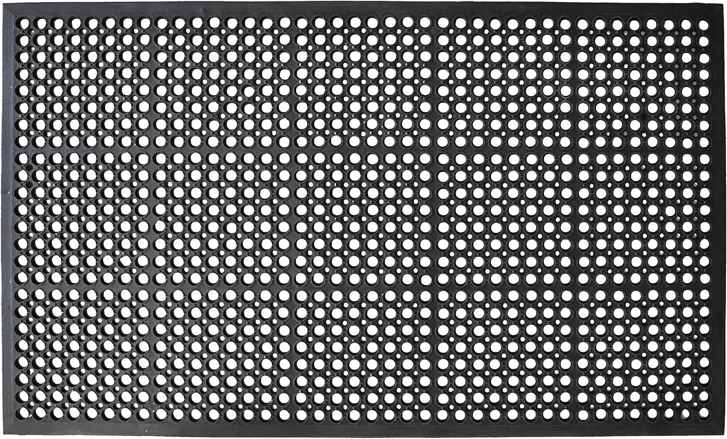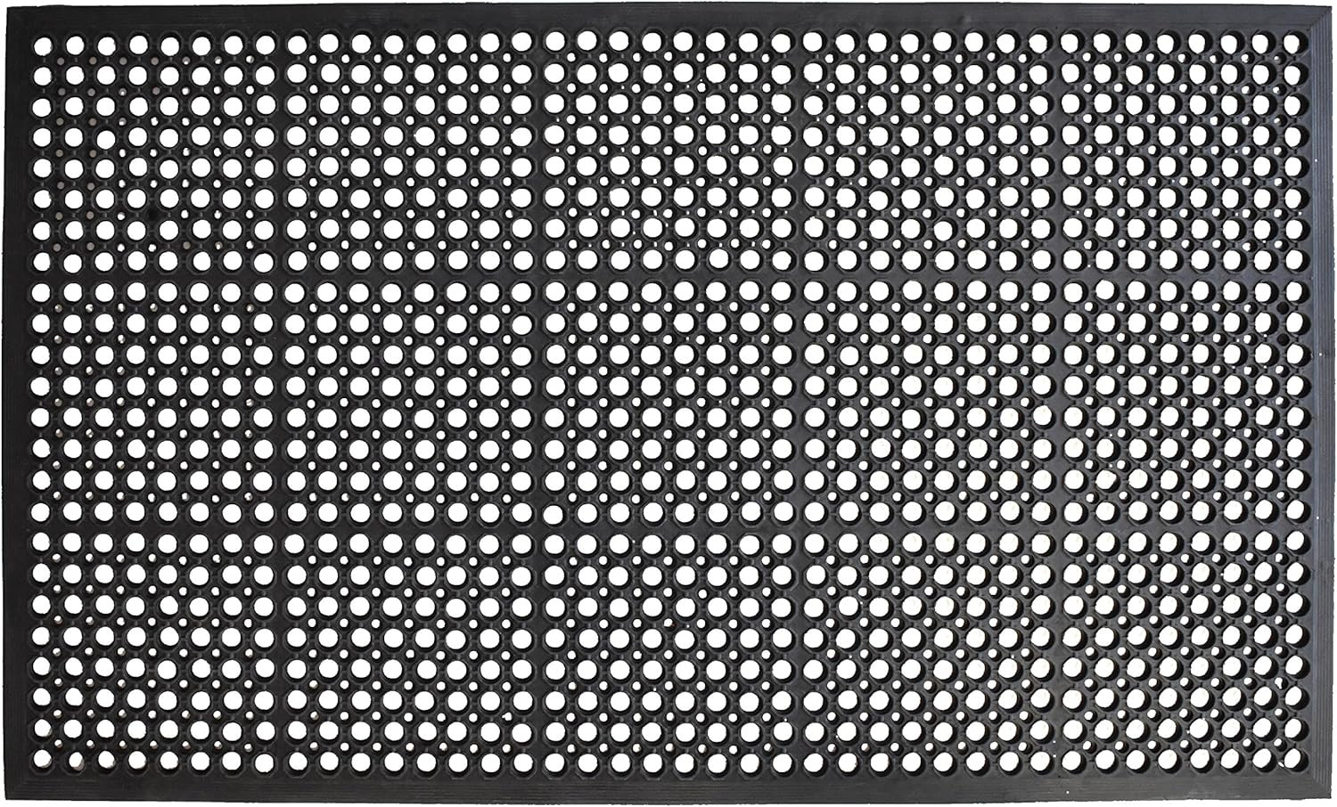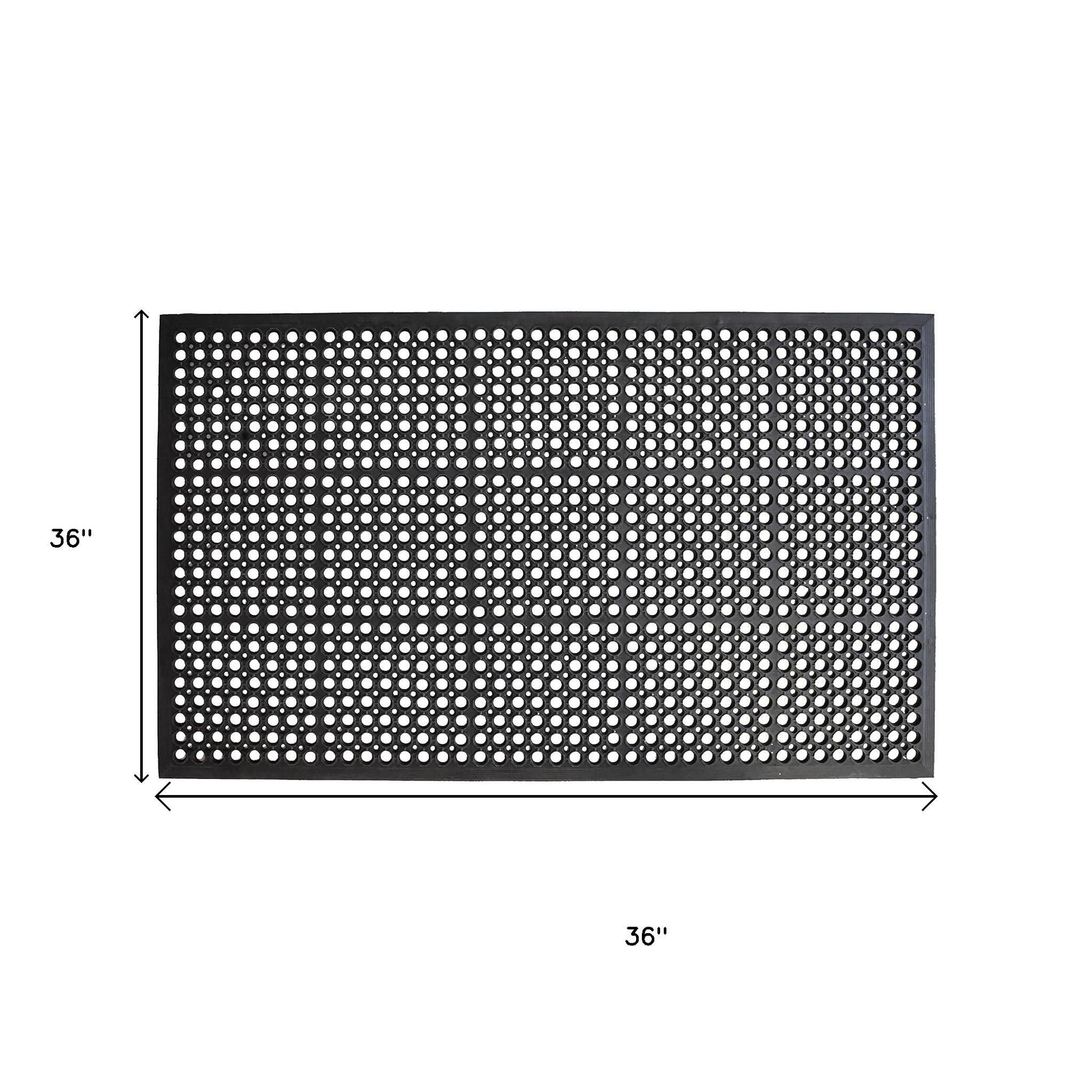 Ready to withstand heavy foot traffic, this 36-inch x 36-inch black rubber outdoor door mat is an ideal option for the front door or entrance way of your home or business. Heavy duty, this mat is mildew, fade, and stain resistant. Crafted from rubber, this mat is not only functional but is a visually appealing accessory to welcome people to your home or business. Add this decorative mat to create a practical yet inviting welcome to all who enter. 36-inch h x 36-inch w x 0.2-inch d.